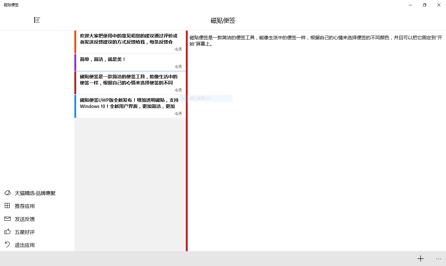磁贴便签是一款简洁的便签工具,能像生活中的便签一样,可以随自己的心情来选择便签的不同颜色,并且把它固定到手机,平板和电脑的“开始”屏幕上。