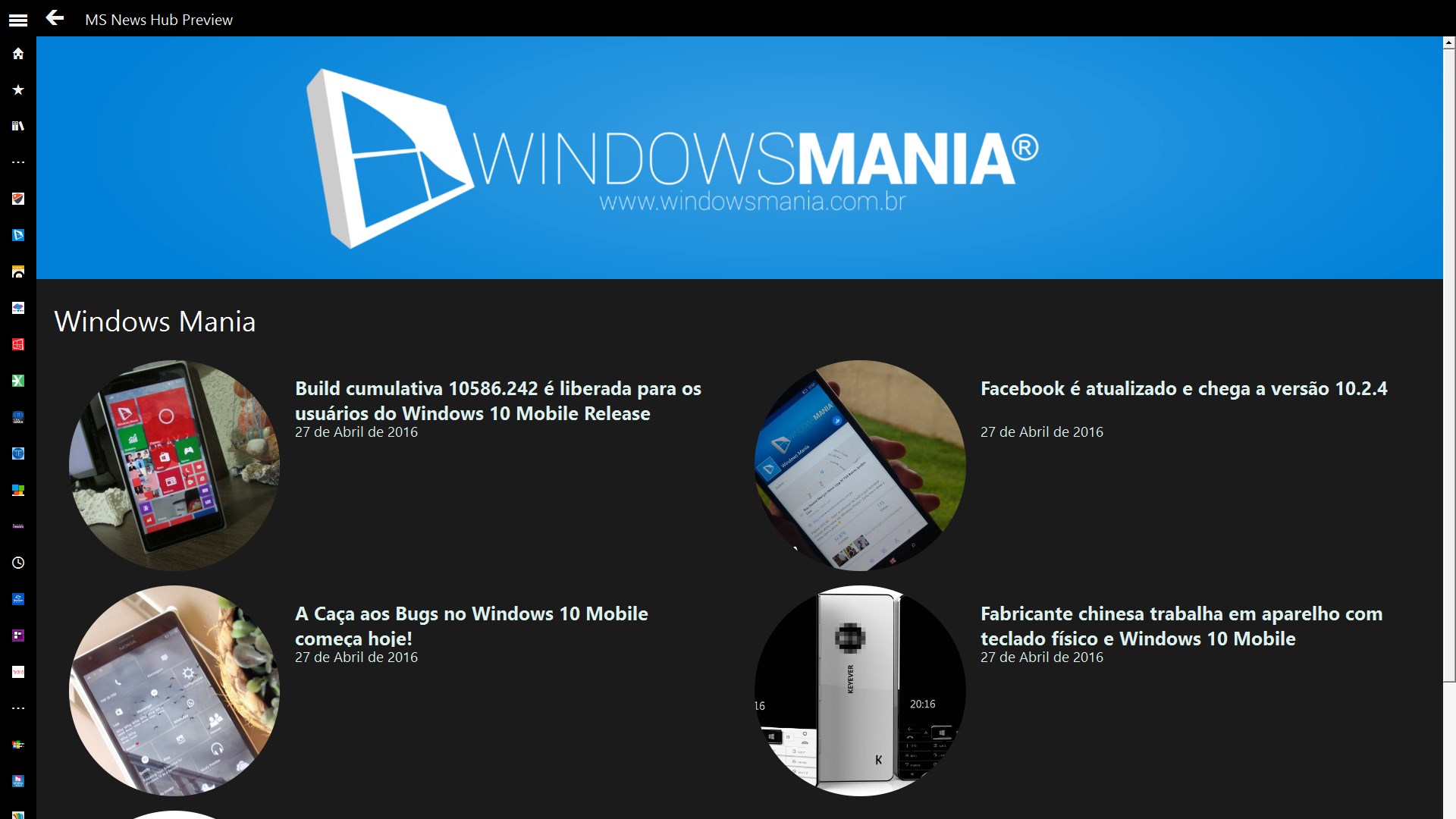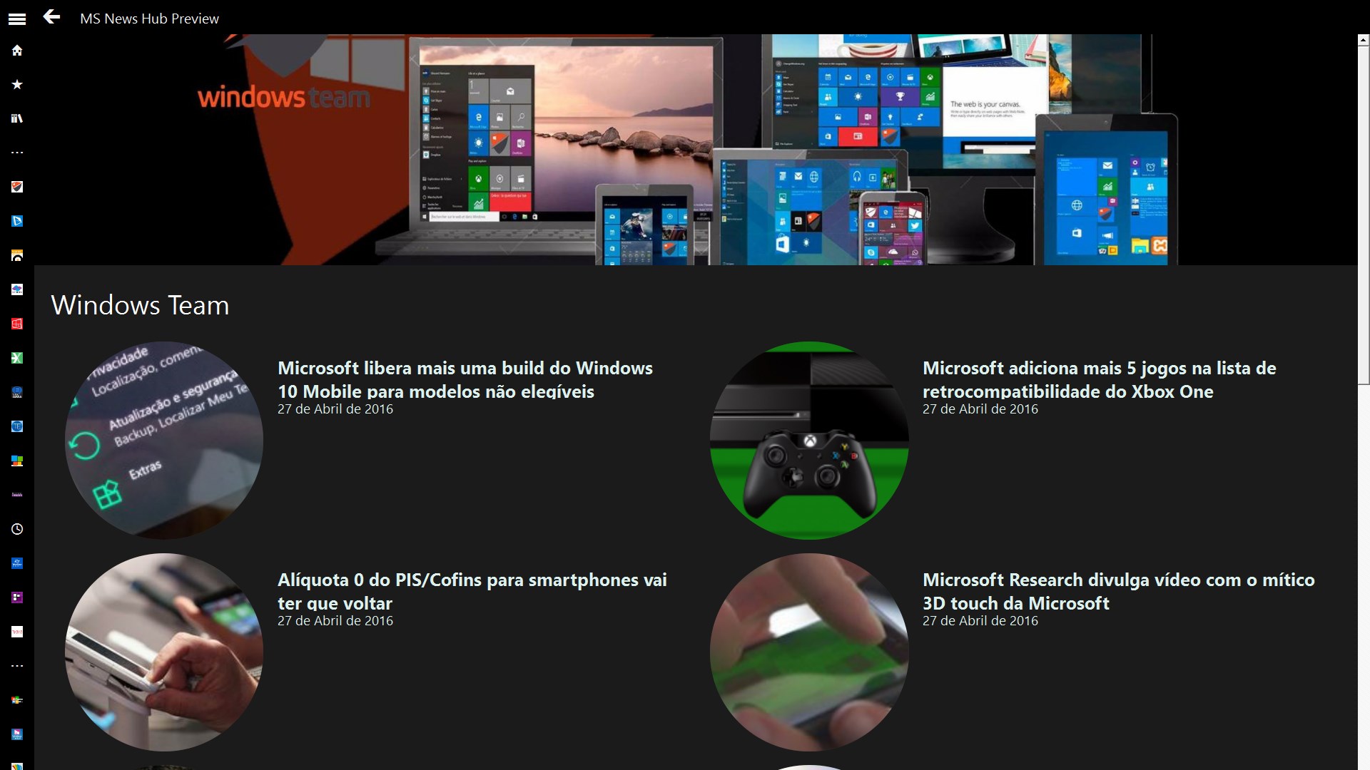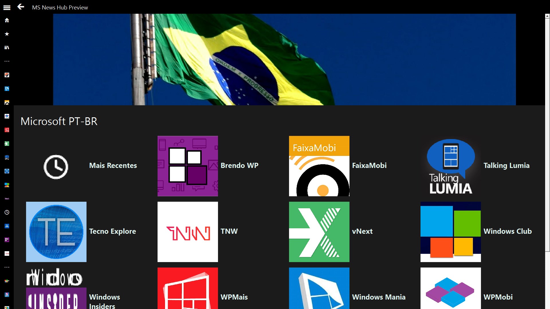 Aplicativo Preview do MSNews Hub. Ao baixar o app, você concorda que estará sujeito a encontrar bugs dentro do app, pois está em beta.