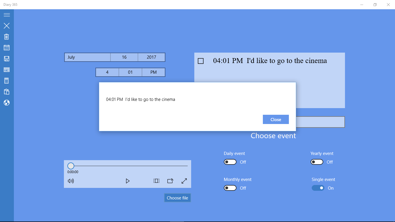 The application helps for daily conducting records about affairs, plans, results and the other records connected with daily business activity of the person.