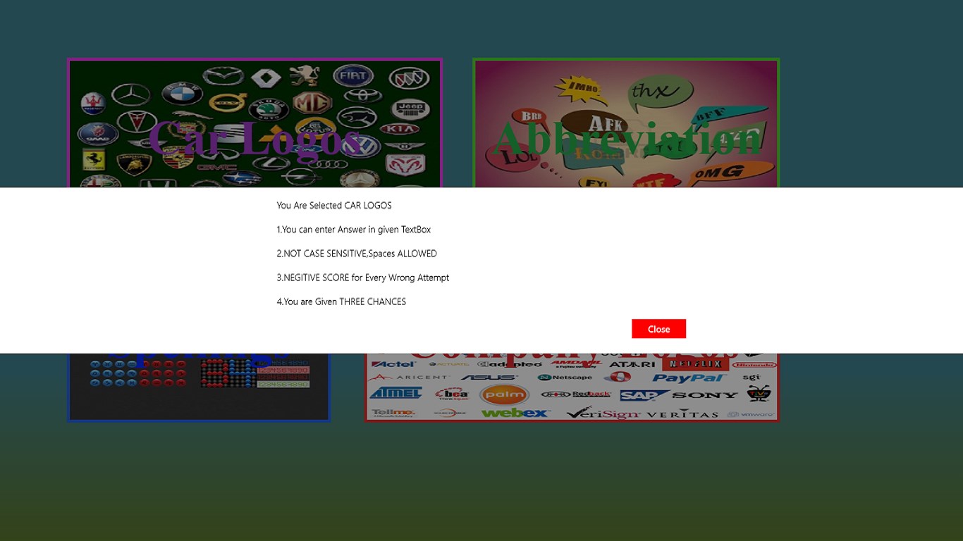 The App click loGO!! is a Full Entertainment quiz game.With Sound Effects this App Provides full Entertainment, it has various categories to play as you like.