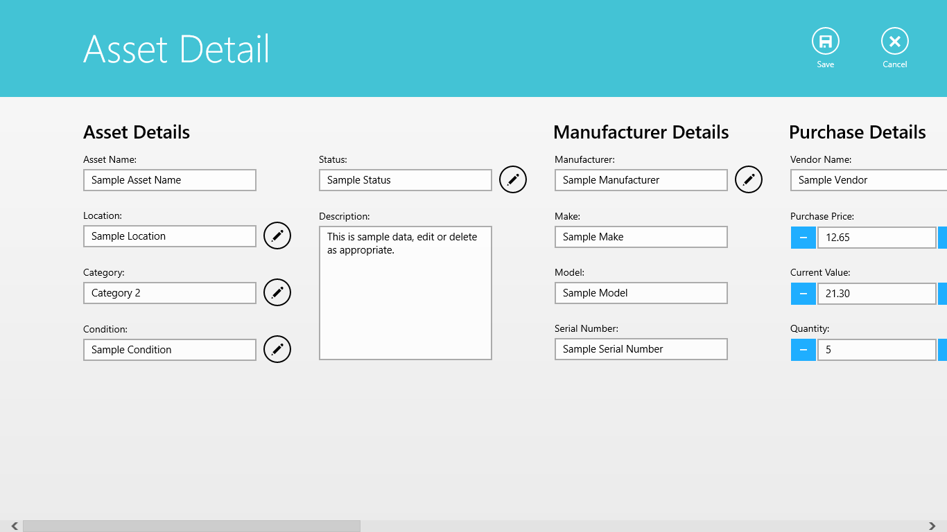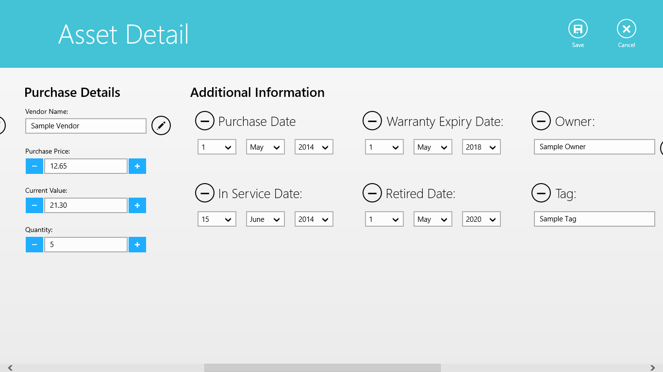Whether you need help keeping track of where your assets are, or if you simply need a better accounting of what you have and how much it's worth, Asset Manager can track it all. With Asset Manager, you can track an unlimited number of assets.