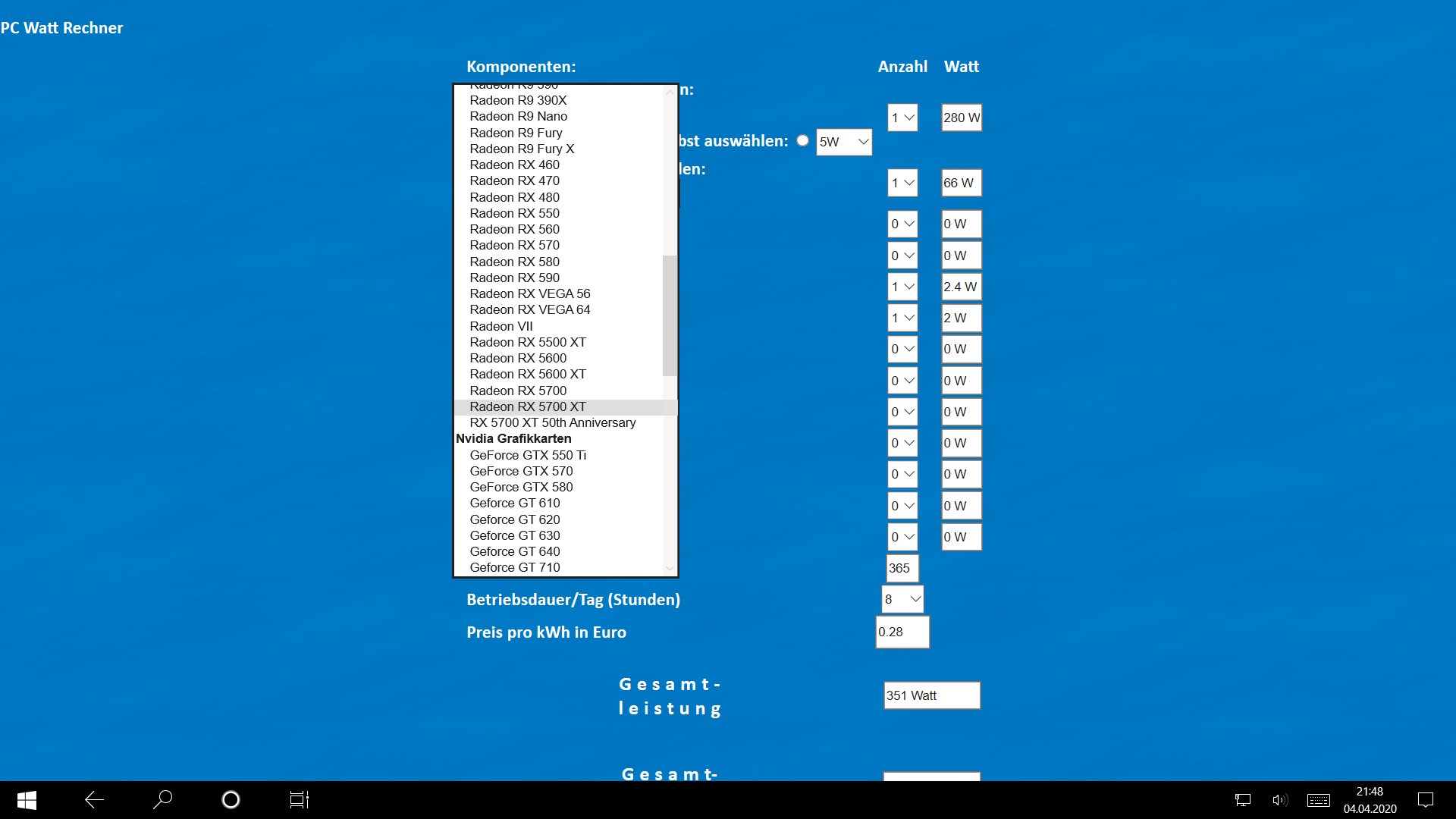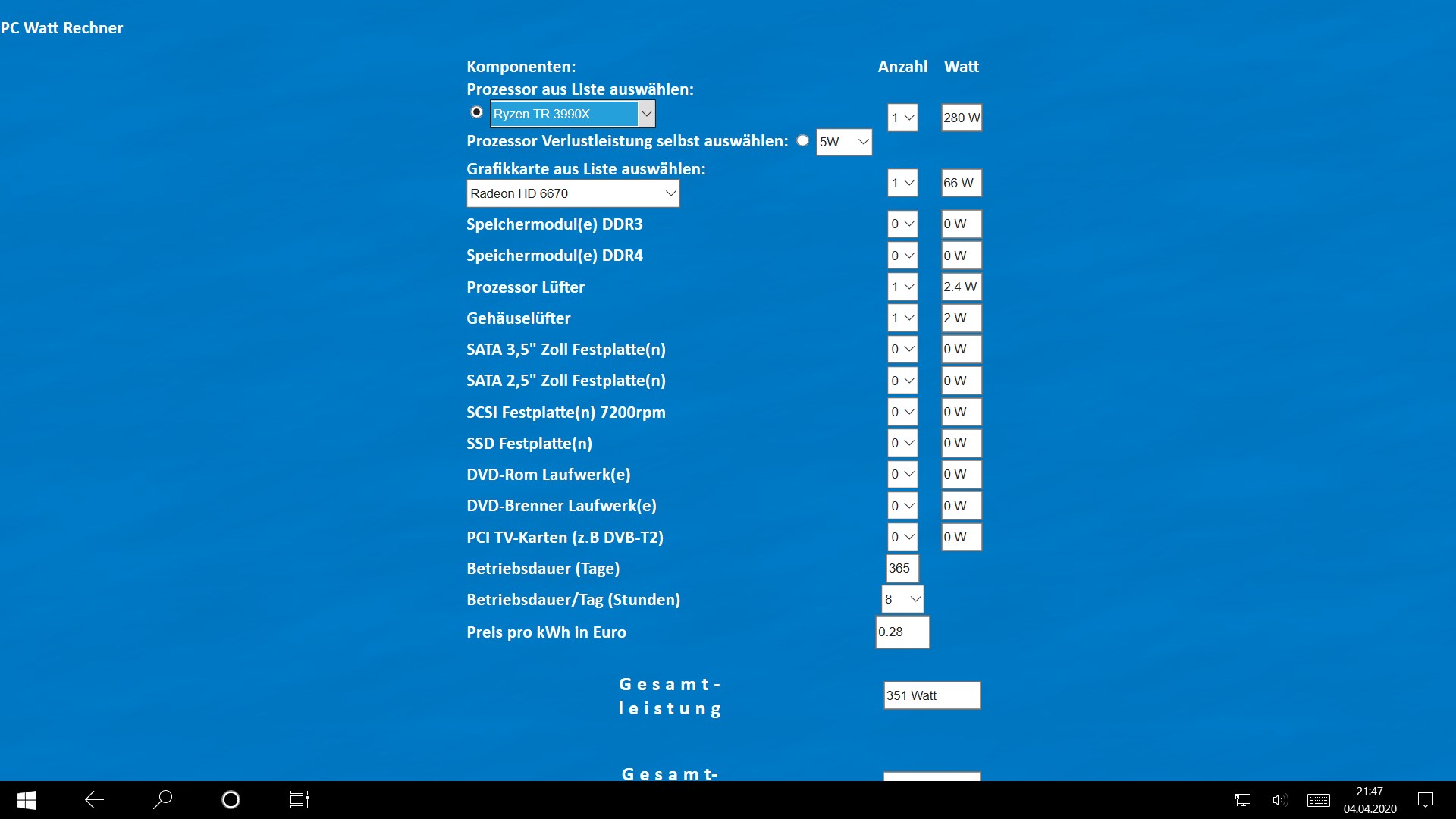 Offline NutzbarBerechnung der StromkostenBerechnen der benötigten minimalen Netzteil Leistung