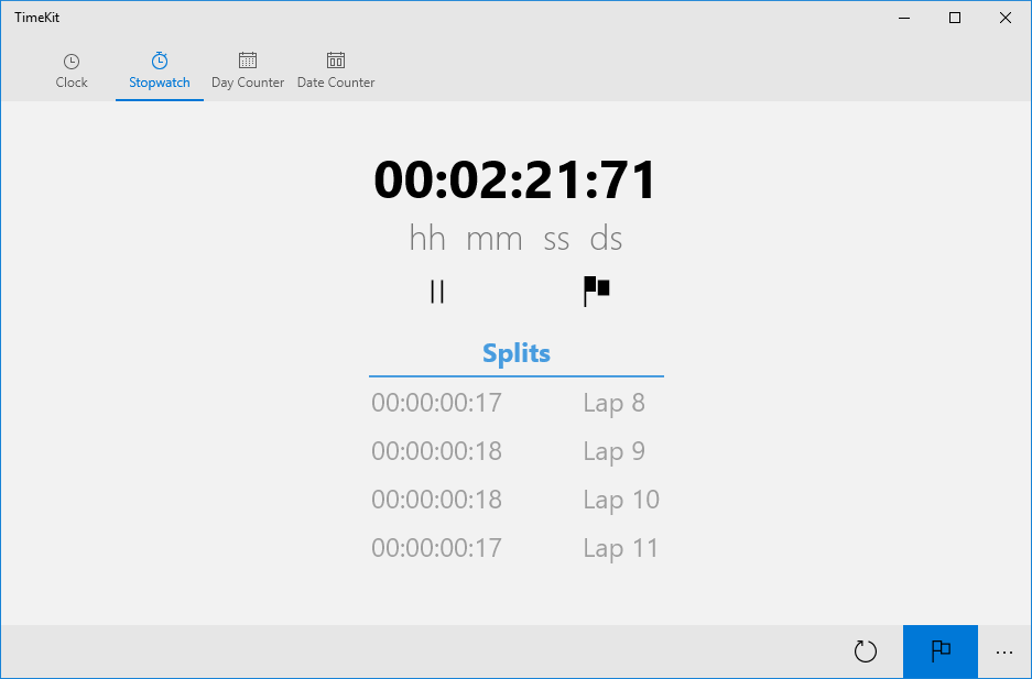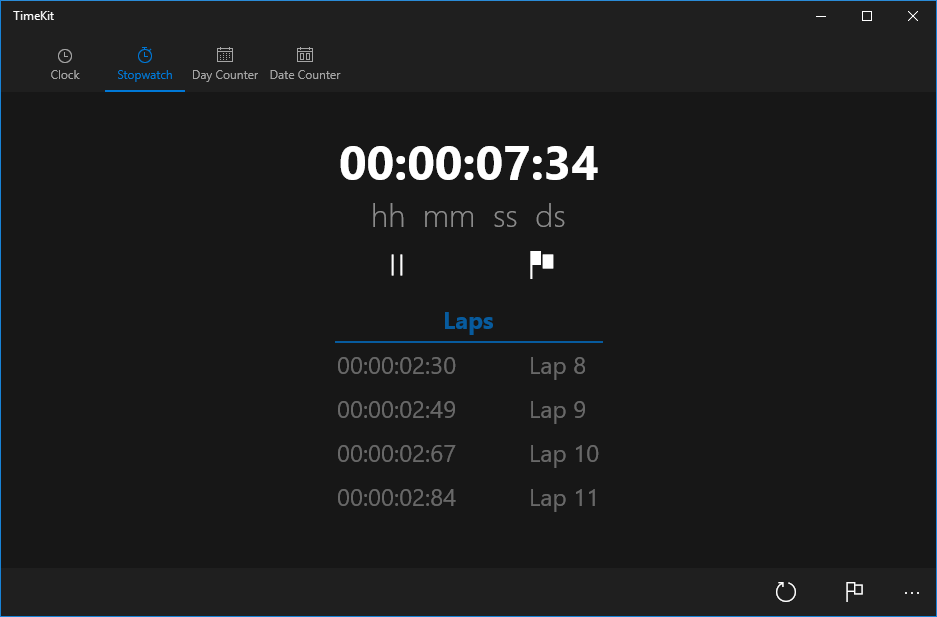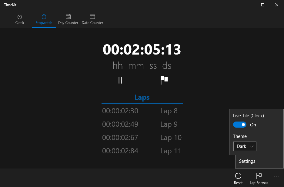 Analog Clock & Digital Clock (24h/12h) DisplayStopwatch with Laps record feature (Lap & Split format)Day & Date CounterLive Tile for showing the Date & TimeLaunch via CortanaPersonal Theme Color (follow the system color)
