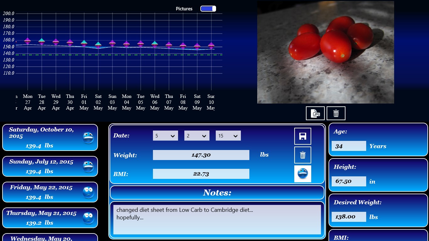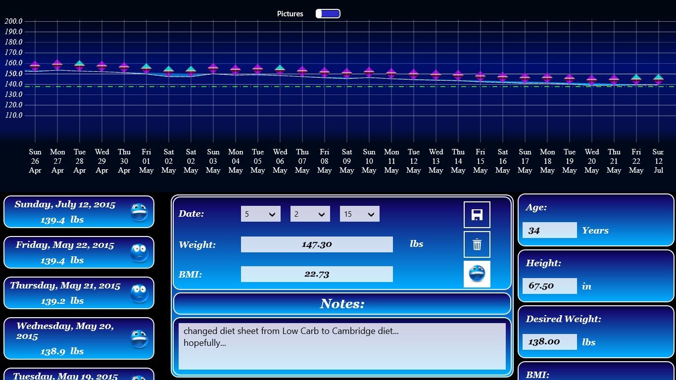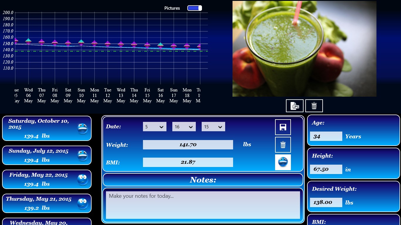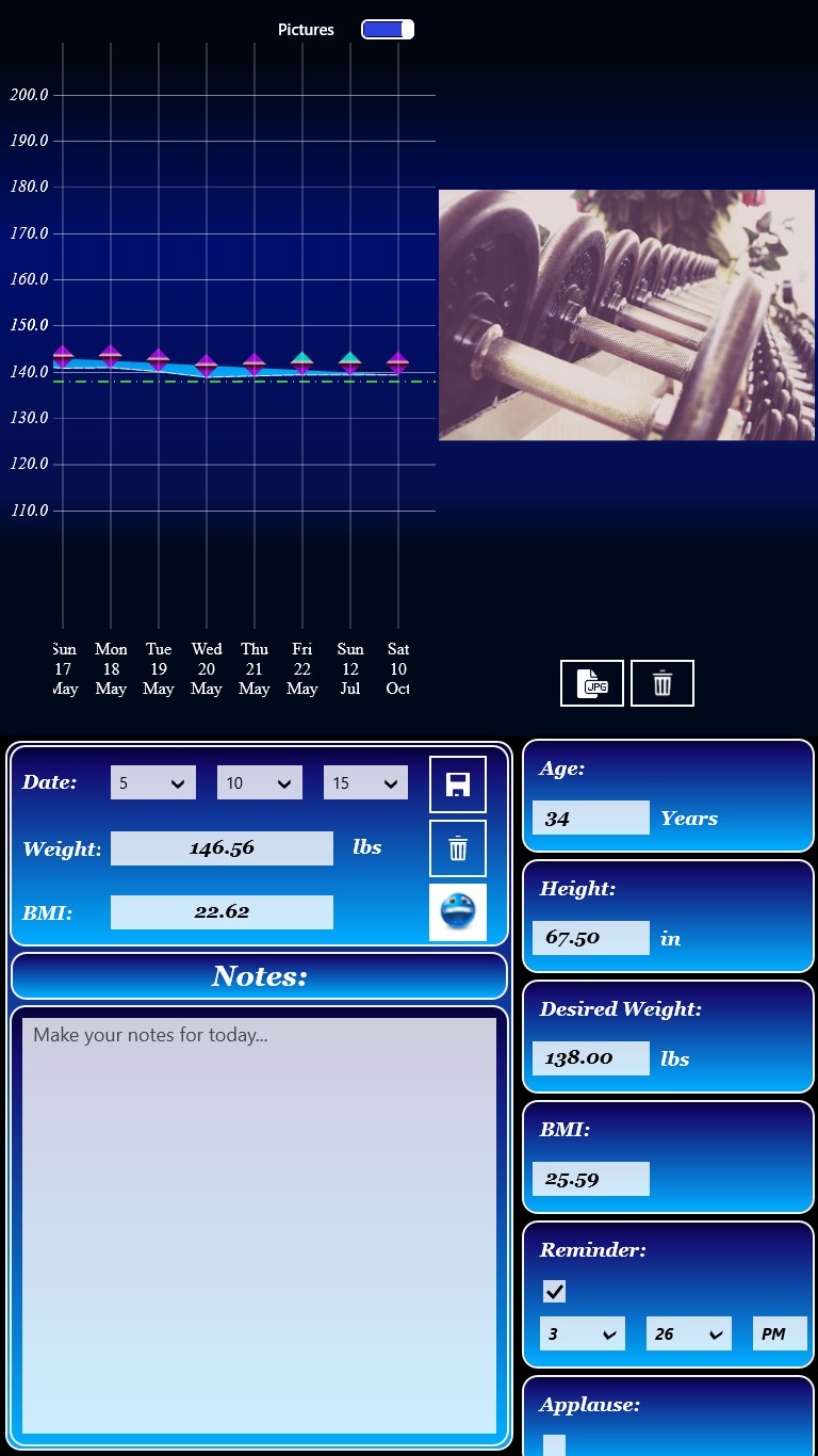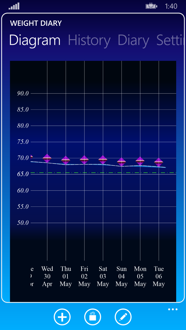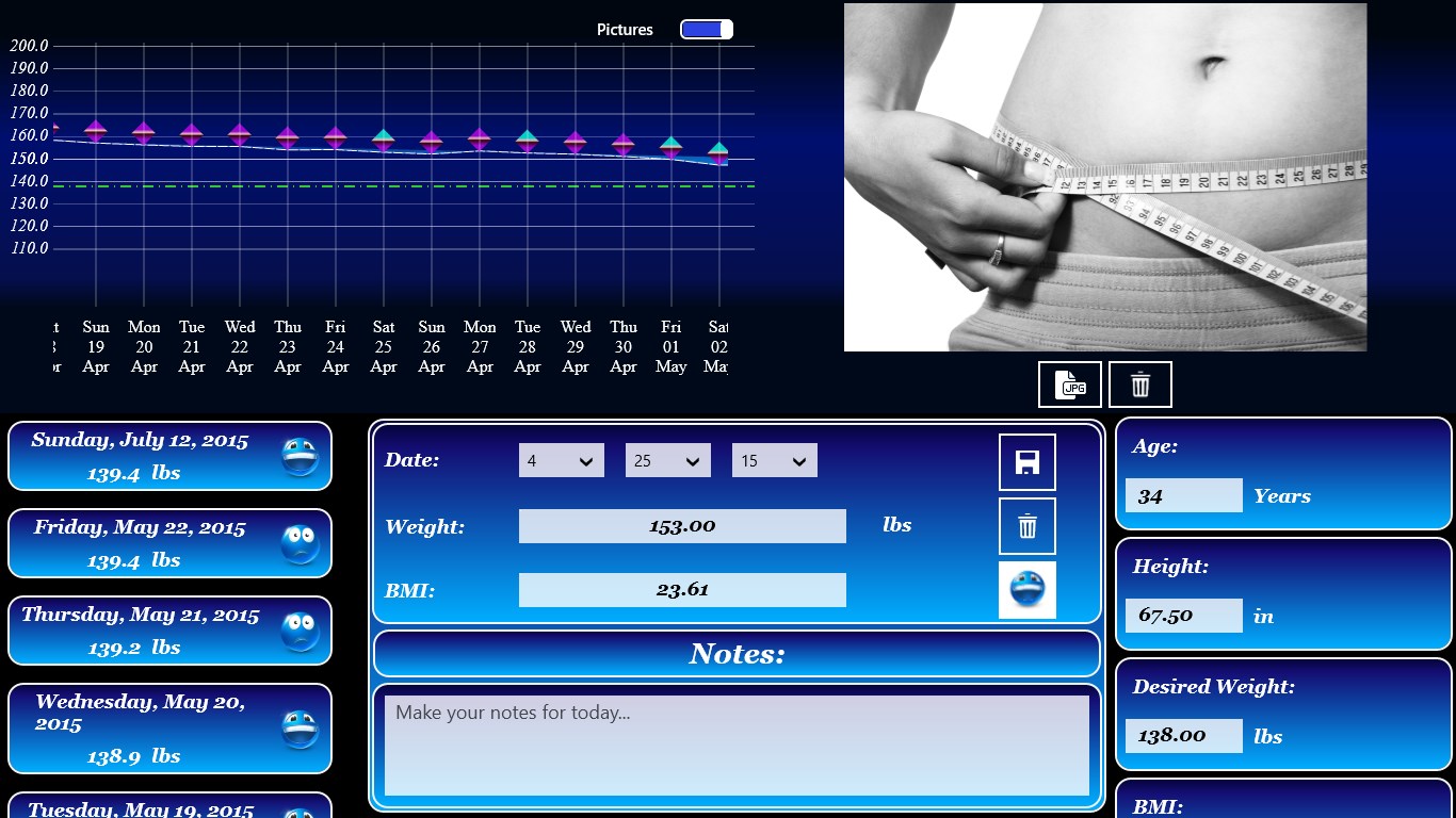 The free version of Weight Diary you can use for unlimited time -as often as you like.Your data will be synchronized automatically on all your devices.When you enter a weight or change a notice on your mobile phone, it will appear also on you tablet or PC or vice versa.