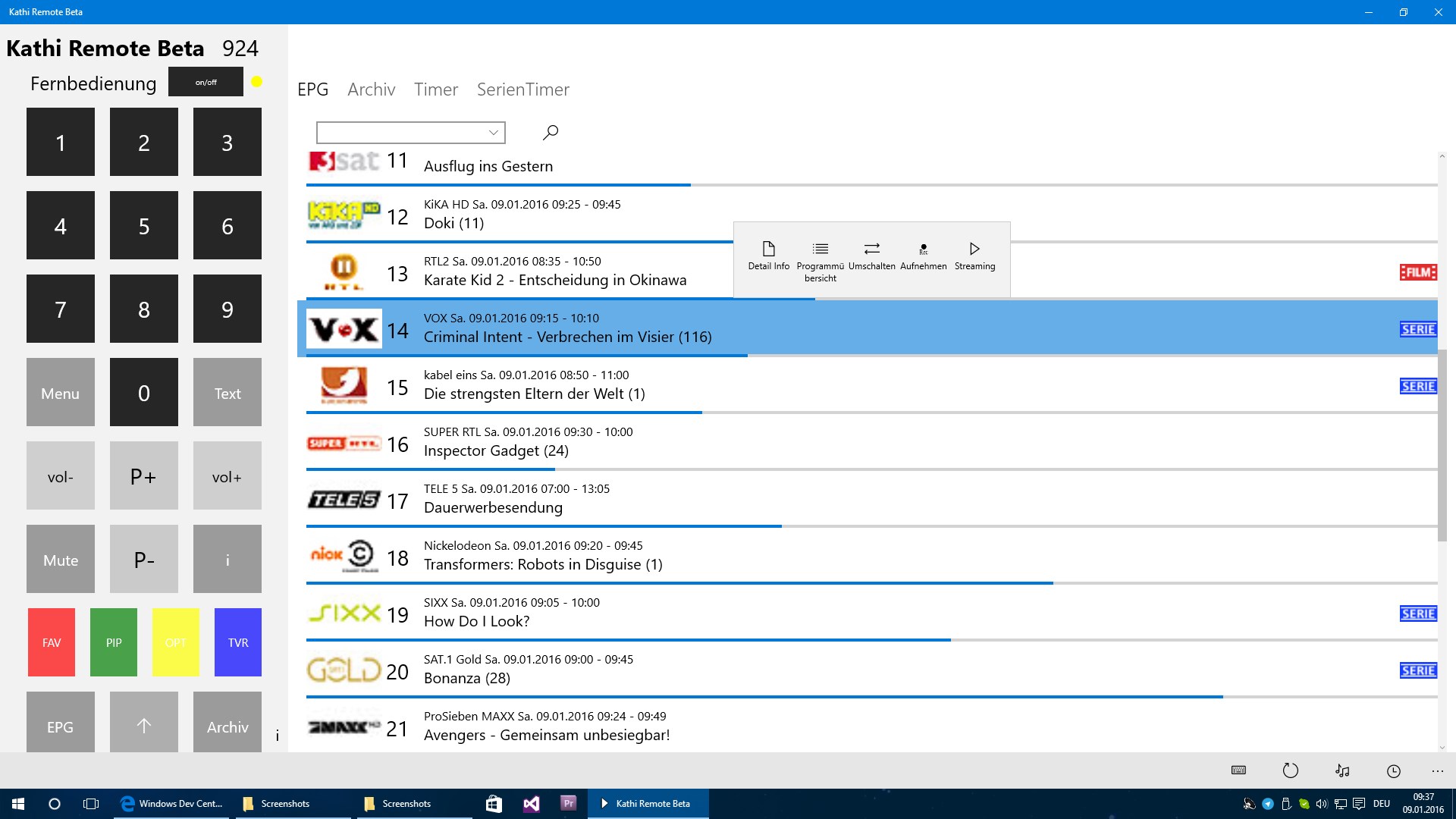 EPGTimer programmingArchivDetail InfoSeries TimerRadio EPGWake on Lan for UFS924Series Timer (not UFS 922/912)Save ReceiverlistFast Receiver selection