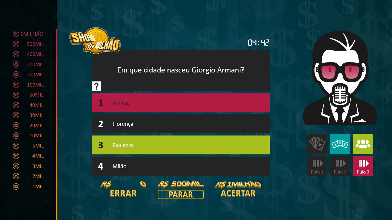 Este jogo é baseado no famoso "Show do Milhão" apresentado por Silvio Santos.