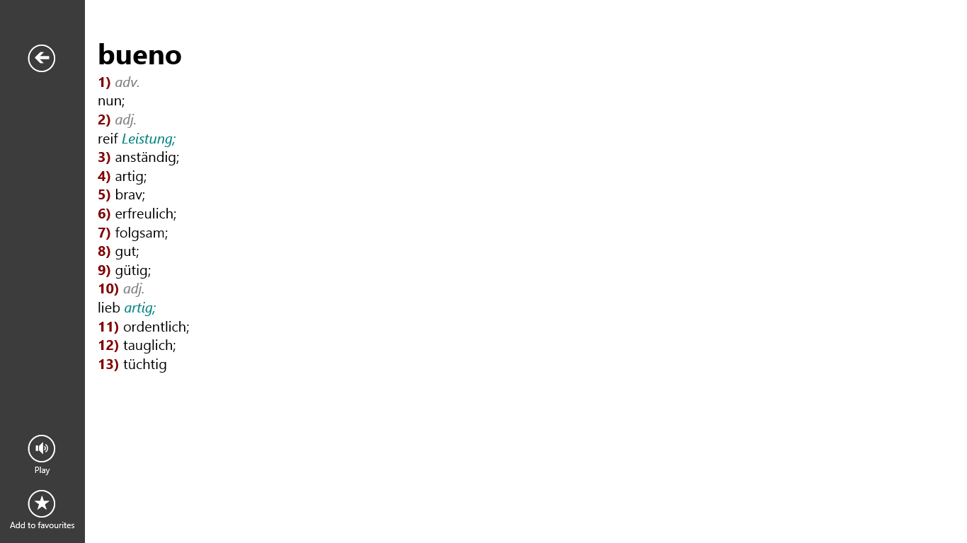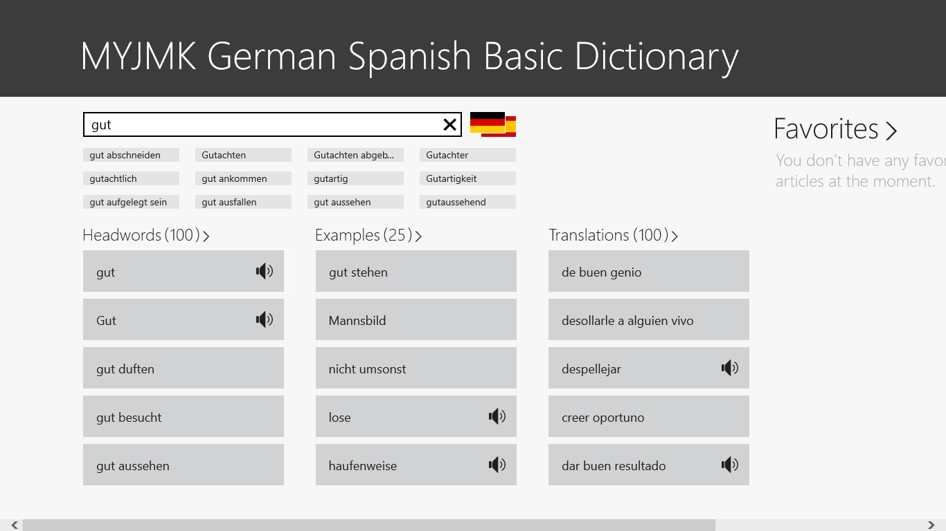 • Audio pronunciations of German and Spanish words recorded by native speakers to master your spoken language skills.