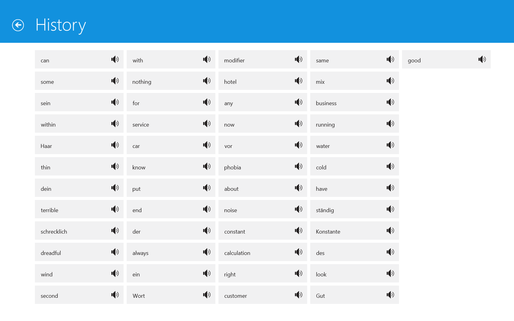 ��� Search history. While you are using the dictionary, it saves all looked up and viewed words/phrases in the history.