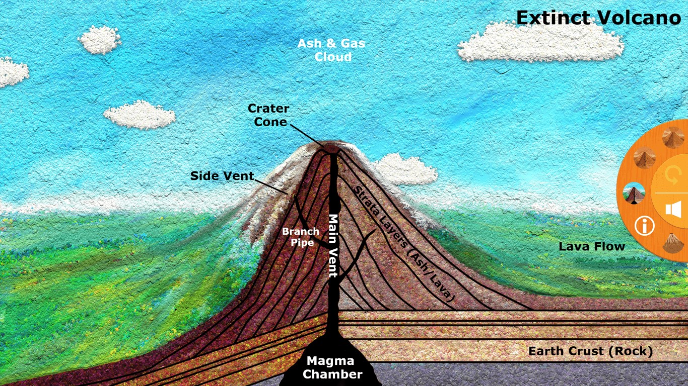 This touch first painted image teaches how a volcano works. Explore inside this volcano in different states of activity. This paid version is ad free and will receive any future updates.