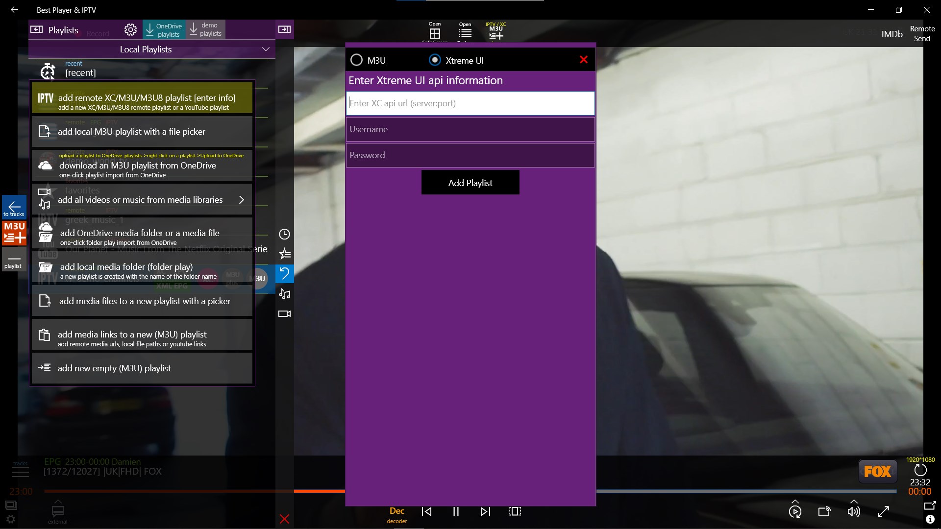 * remote playlists in XC/UI or M3U format with Group, EPG & Logo support