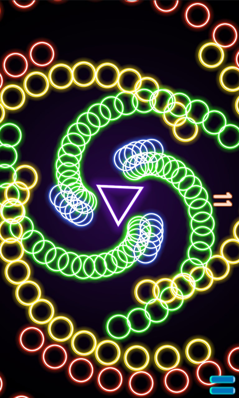 Controls are extremely simple but it's still hard to master. Just press left and right screen to rotate center triangle and try to dodge circles