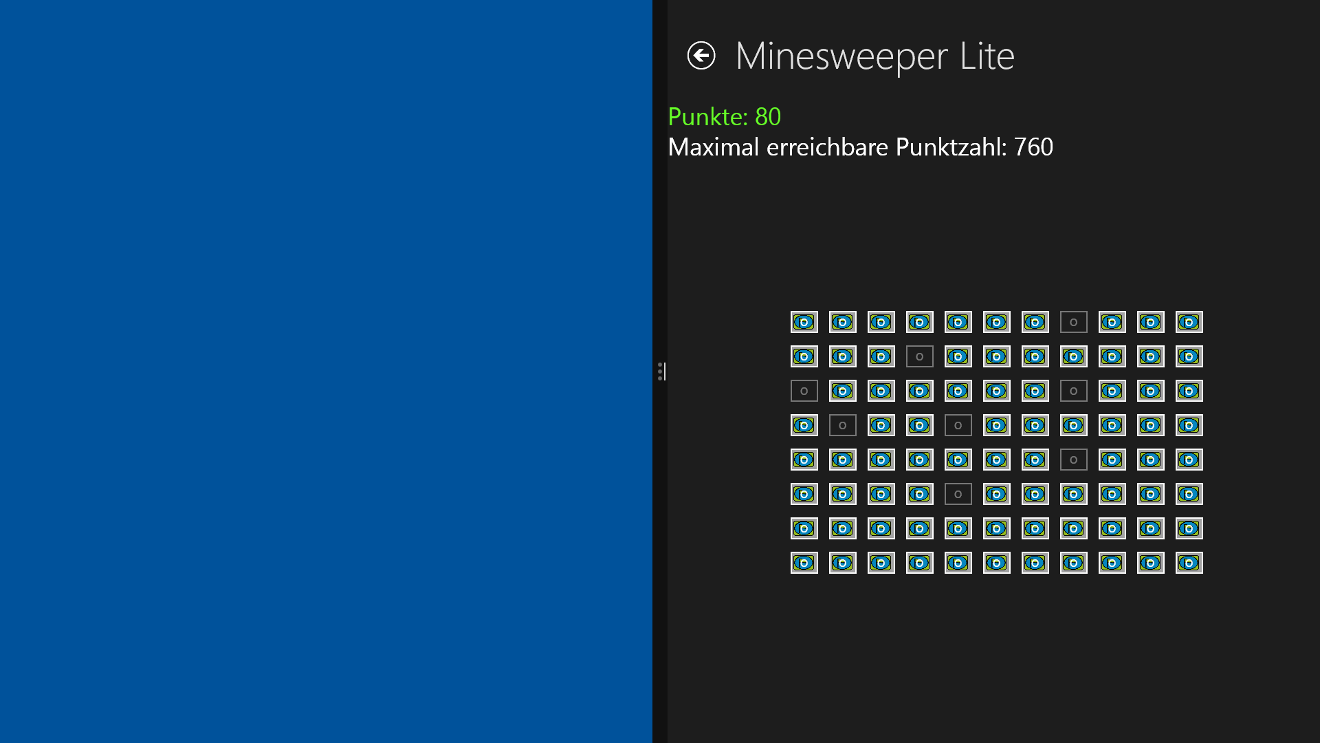 Der Nutzer muss Felder räumen. Ziel des Spiels ist es, alle minenfreien Felder zu räumen. Man verliert das Spiel, wenn eine Mine hochgeht. Abe keine Sorge - dann bekommt man eine Übersicht über den Erfolg angezeigt und kann das Spiel erneut spielen... ;)