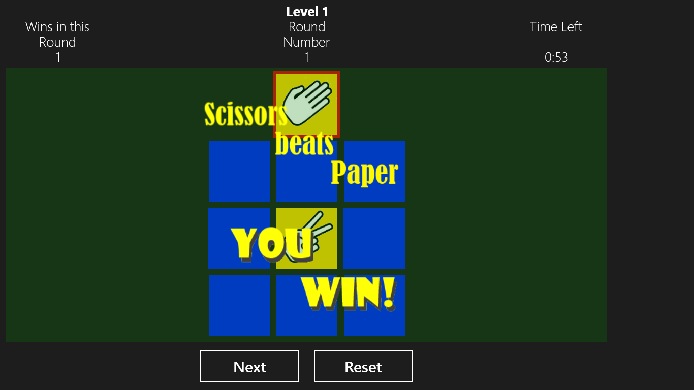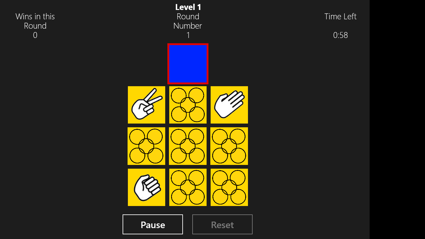 You've played matching games, you've played Rock Paper Scissors. So now play them both at the same time and test how quick your wits are. Remember, you don't want to match, you want to crush (or cut, or cover) and win!