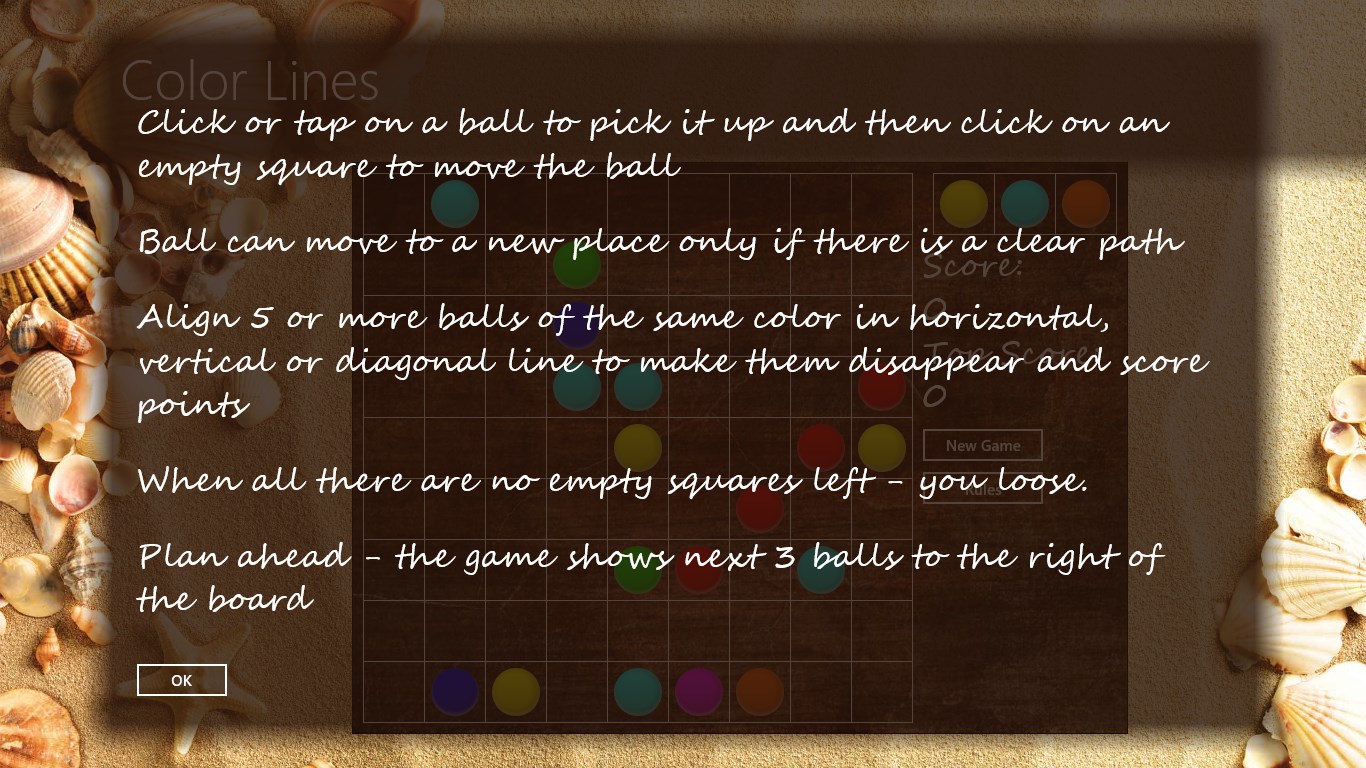 Play the classic puzzle game from the 90s. Align 5 or more balls of the same color in a line and score points. With enough skill you can play this brainteaser for hours.
