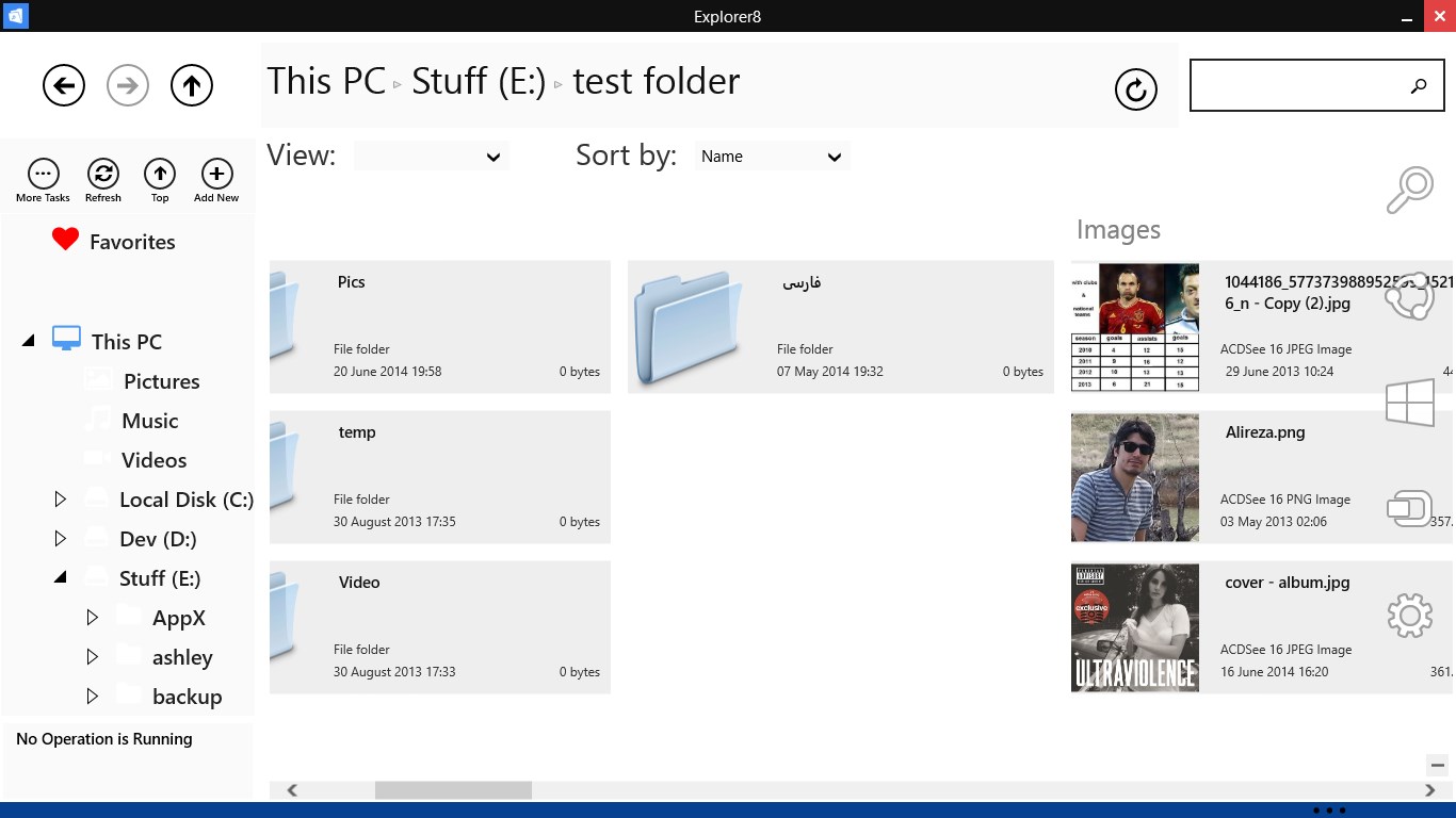 Explorer8 is a modern and beautiful file and folder explorer/manager for your Windows 8 and 8.1 PC with lots of great features. Navigate through your computer without compromising the abilities for both touch and mouse+keyboard PCs. This app lets you copy/move/rename files and folders, preview the contents of common file types and in general, manage the files and folders of the system.