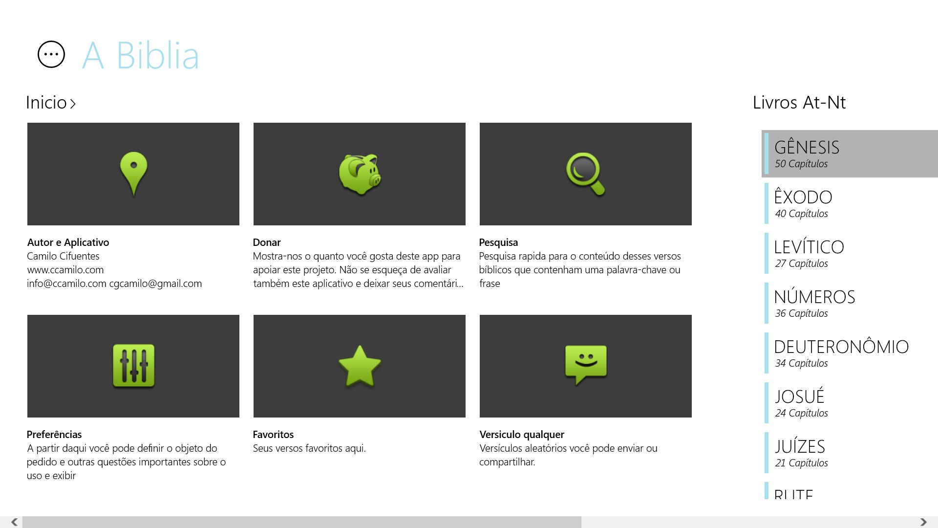Com apenas 2 toques você chegar ao versículo do livro que você quer! Não é preciso escrever nada. Você também pode salvar os versos que você gosta. mais belo projeto aplicativo da Bíblia em Windows Store. Não precisa de conexão com a internet.