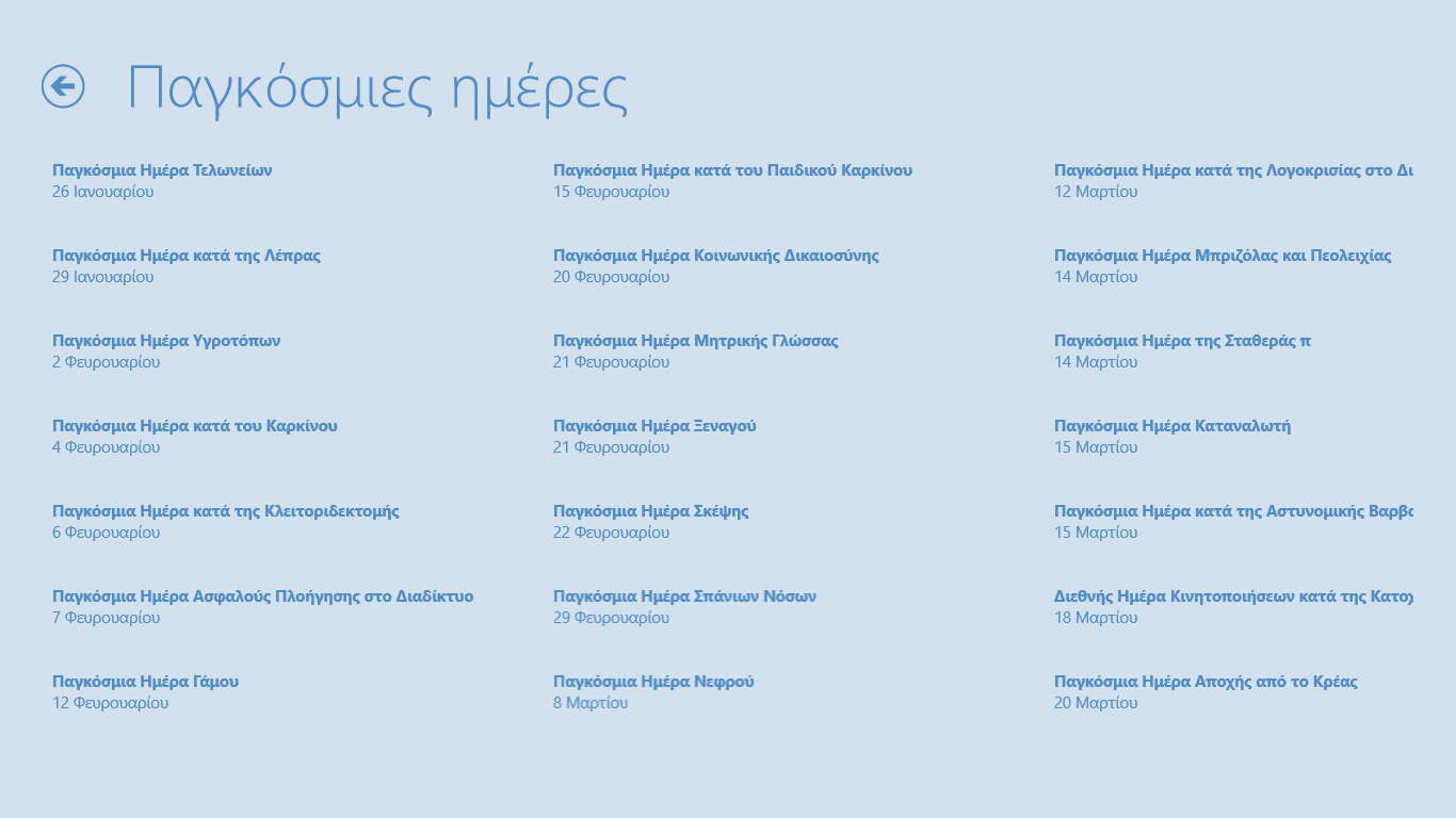 Προστέθηκε η λειτουργία του live tile όπου μπορείτε να δείτε ποιοι γιορτάζουν σήμερα και τις επόμενες 2 μέρες χωρίς να ανοίξετε την εφαρμογή. Τα κουμπιά στο κάτω μέρος της εφαρμογής πλέων είναι πάντα ορατά γιατί πολλοί χρήστες δεν γνώριζαν για την ύπαρξη τους με αποτέλεσμα να μην έχουν πρόσβαση σε όλες τις πληροφορίες της εφαρμογής.