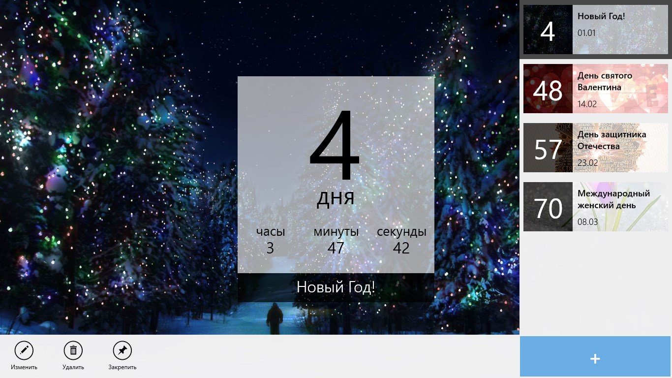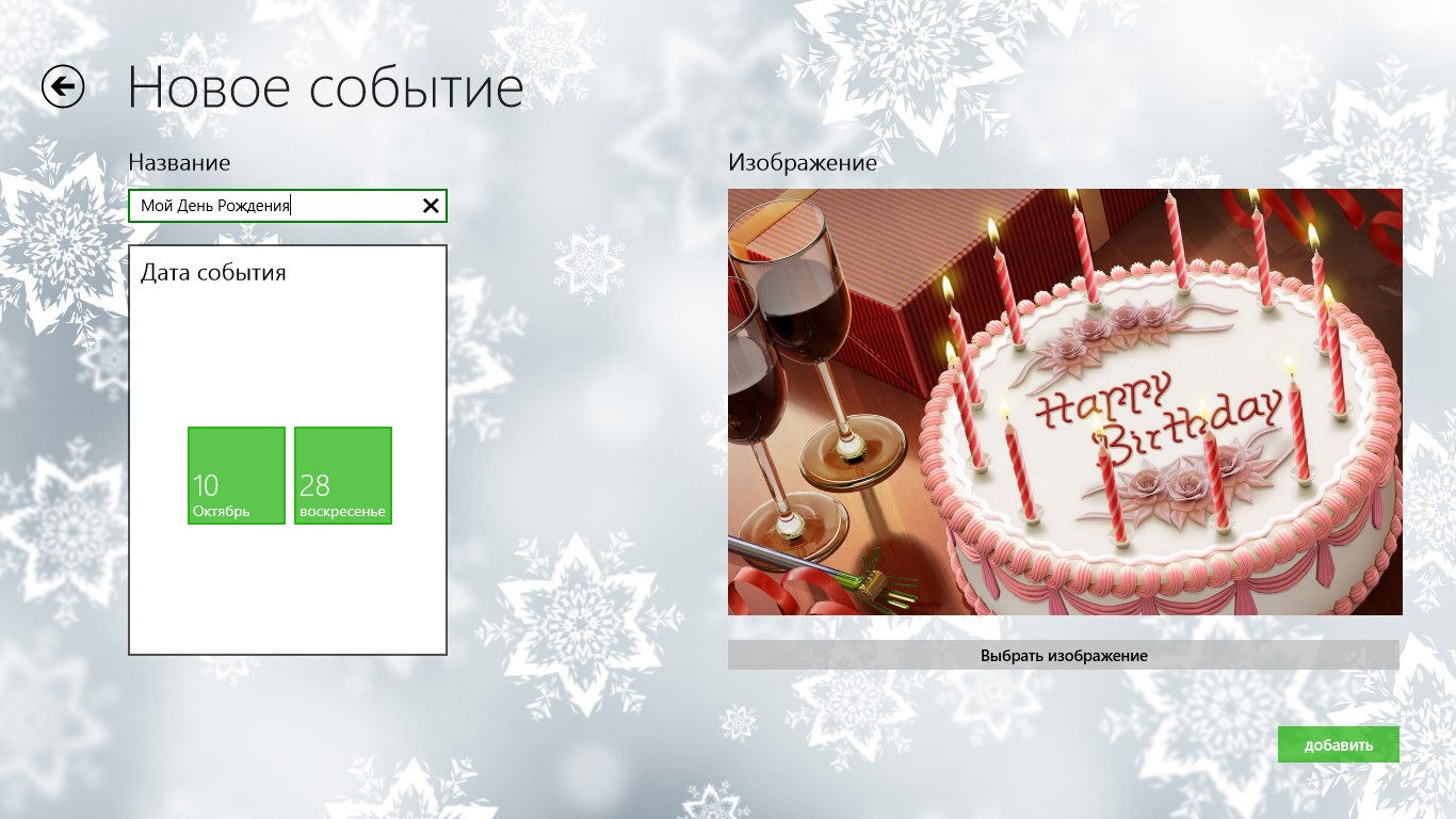 Живые тайлы приложения всегда напомнят о блишайших праздникахДобавляйте свои события, настраивая дату и фон для каждогоВойдите со свой учетной записью ВКонтакте и добавляйте Дни Рождения друзей
