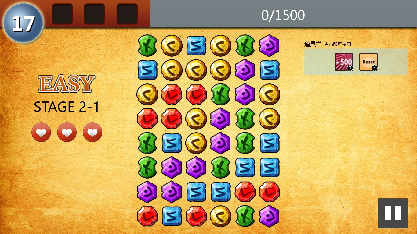 首先这并不是传统的逢三消除哦,在游戏中,不仅上下、左右相邻的符文,甚至斜45度角上的相邻符文都可以进行互换。而且和传统三消最不同的是,移动后并不急于消除,也就是说,和传统三消“移动后如无法消除”就不让移动的规则,在这里是不存在的。所以你可以通过多次移动,将同色符文预先移到一起,最后再加一个来进行消除。