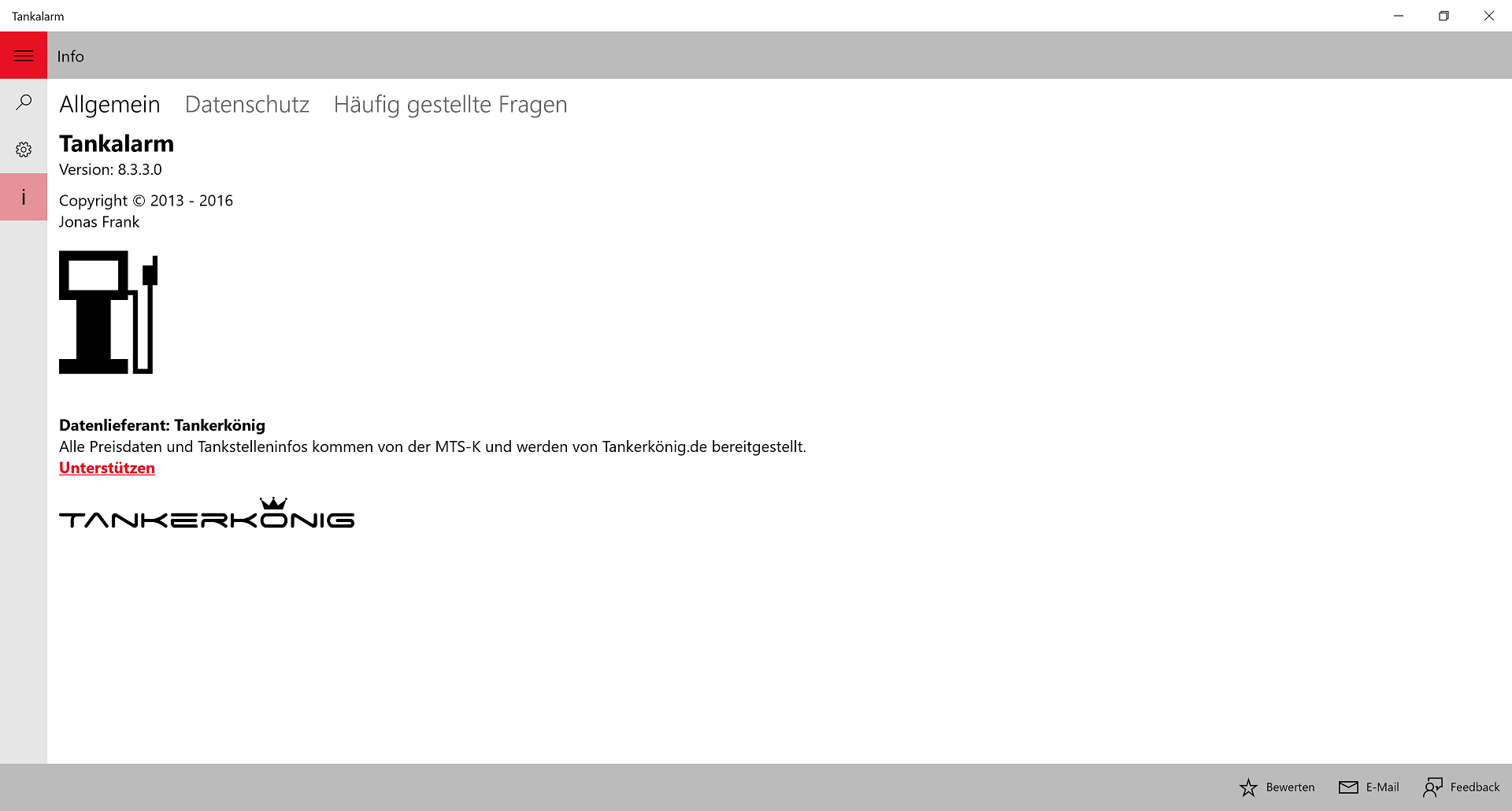 Tankalarm basiert auf der "Universal Windows Platform" und ist damit unter Windows 10 (Desktop) und Windows 10 Mobile verfügbar.