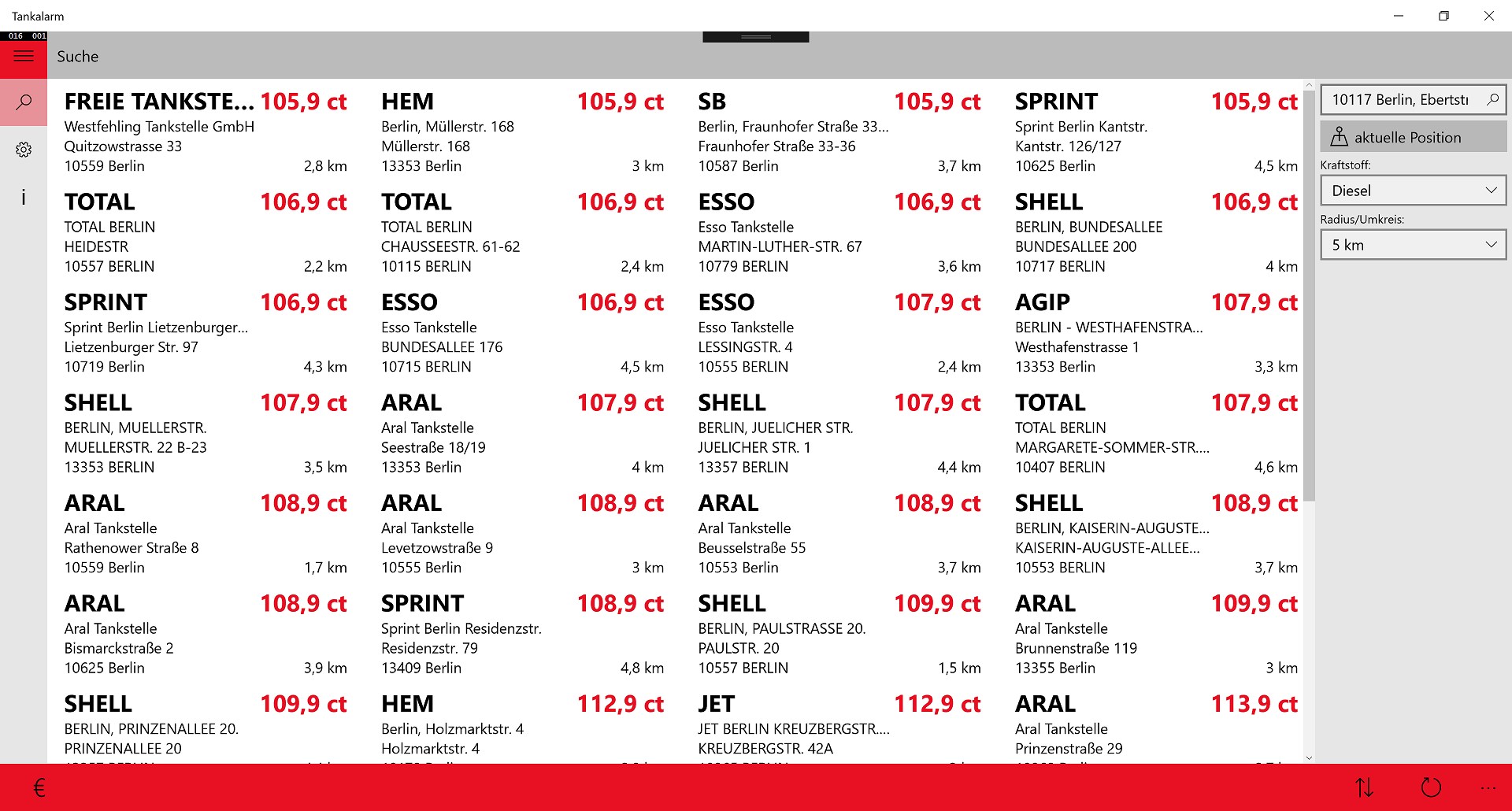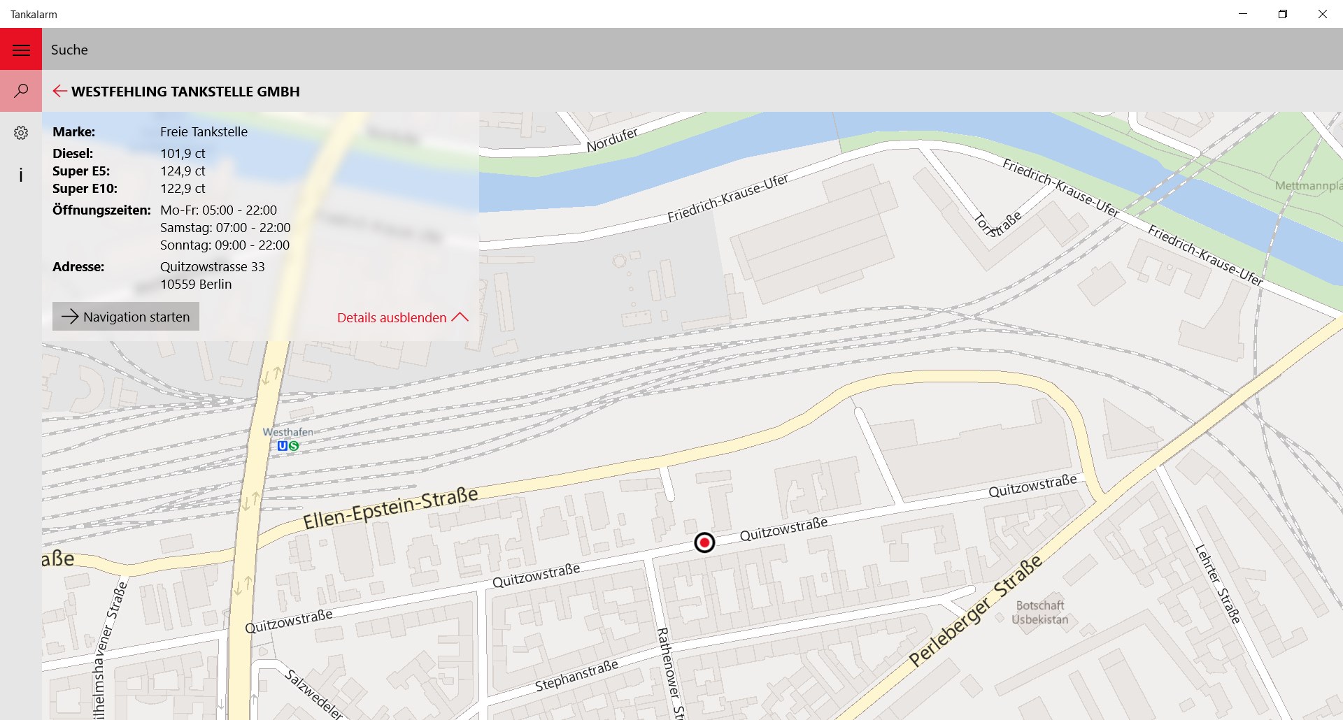 Diese App zeigt die Kraftstoffpreise (Diesel, Super E5, Super E10) der Tankstellen in Deutschland an.