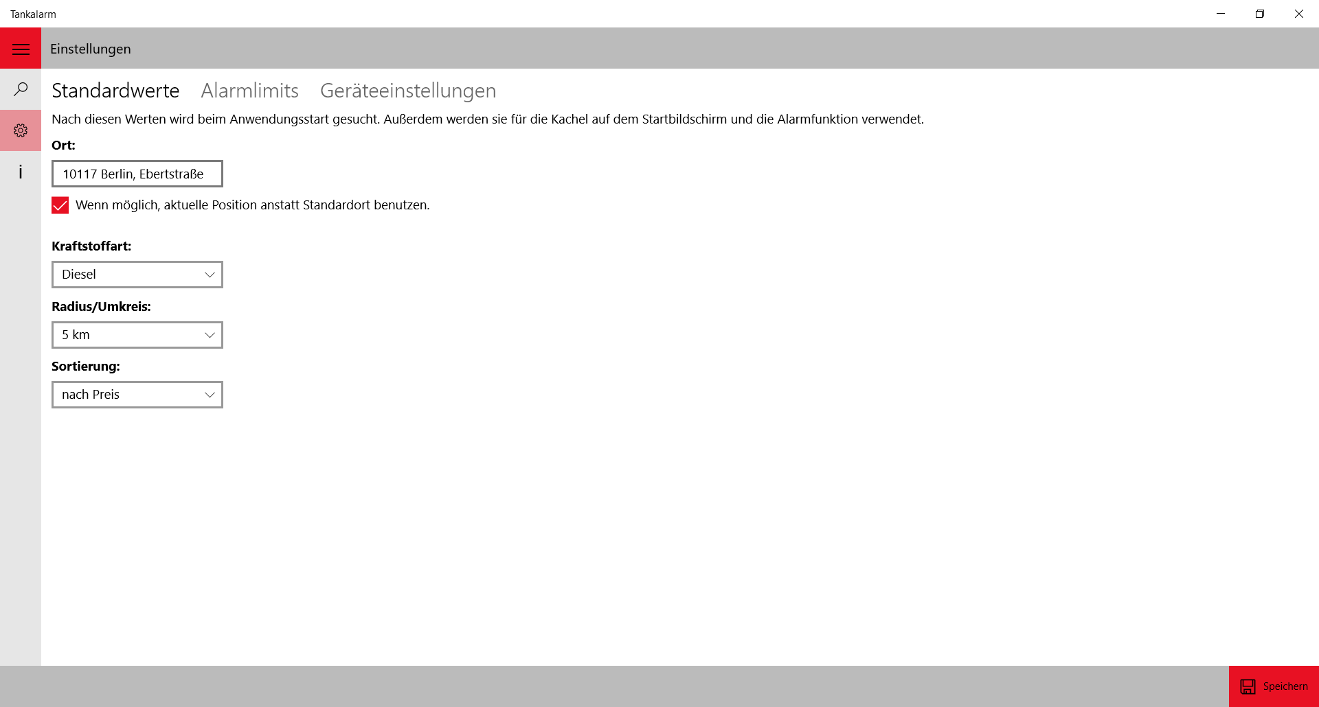 Live-Kachel mit aktuellen InformationenAlarmfunktion (Benachrichtigung sobald eingestelltes Limit erreicht wird)Suche nach Postleitzahl, Ortsname oder aktueller Position möglichVerknüpfung mit Karten-Apps (z.B. Microsoft Karten) zur direkten Navigation an eine TankstelleSynchronisierung der Einstellungen über alle Geräte hinwegAnzeige der Öffnungszeiten einzelner Tankstellen