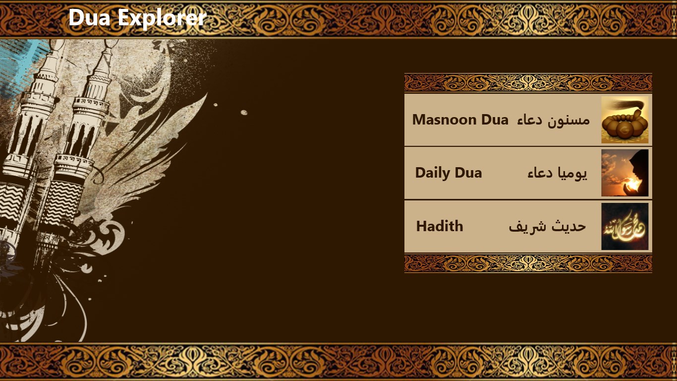 Dua Explorer is an app related to Islamic Supplications. Daily Duas refer to the Duas that you recite day-to-day and then Dua Explorer that can read in various situations. There is another portion of hadith which are taken from bukhari sharif.