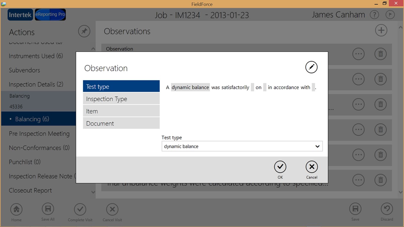 Inbox of assigned visits and inspectionsInfinite number of centrally managed inspection forms and client branded reportsSupport for complex inspectionsPhoto capture and photo annotationAdd Inspection Steps and Observations, each with photos, signatures and other client, equipment specific measurement data pointsGenerate multiple reports, Inspections, NCR\'s, Punchlists, Flash Reports and many moreUpload Reports onto a Customer Portal, or Email ReportsSupport for large numbers of photos and attachments >100MB\'sRestartable data transfer system to cope with slow or very poor network connectivityReports generated with dynamic sections, dynamic content, and dynamic numbering for flexible report generation