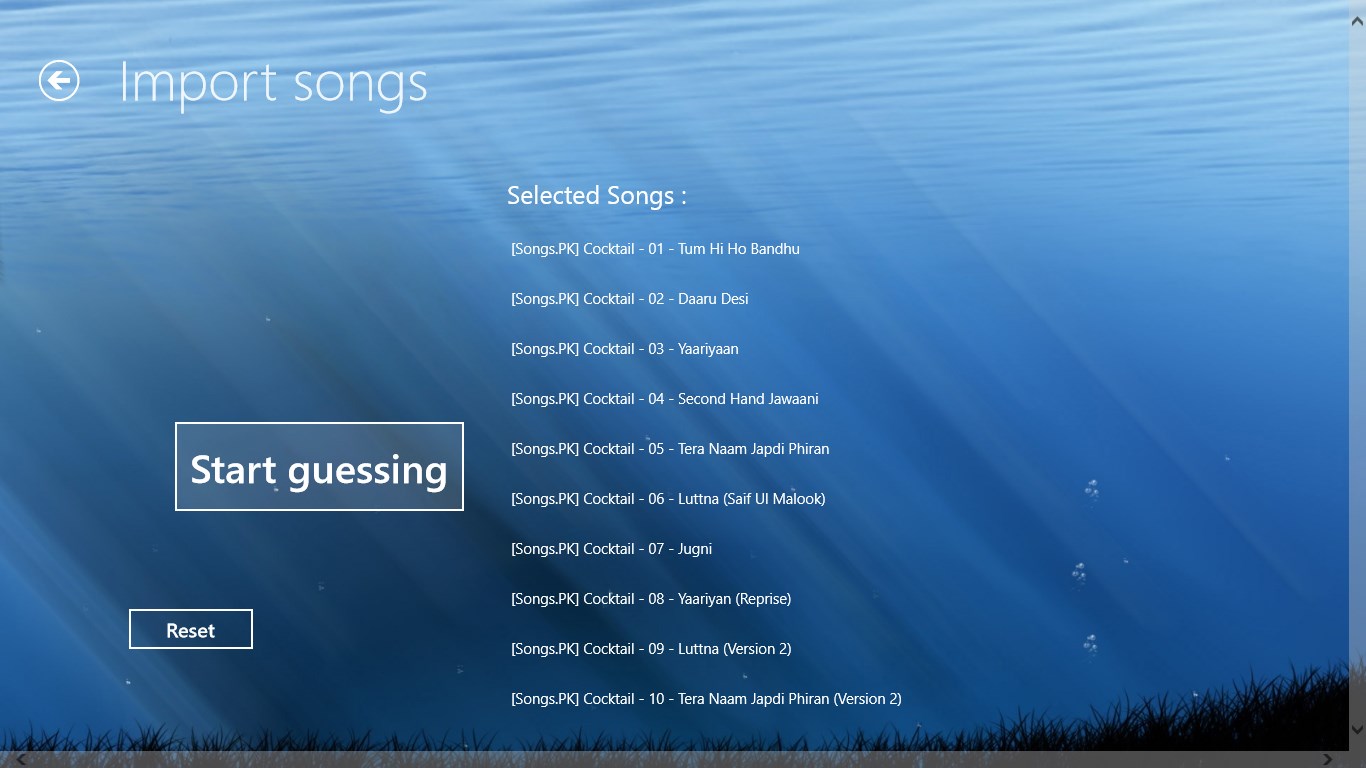 Custom selection of songs list from your system.Random selection of songs for test from the list you have chosen.