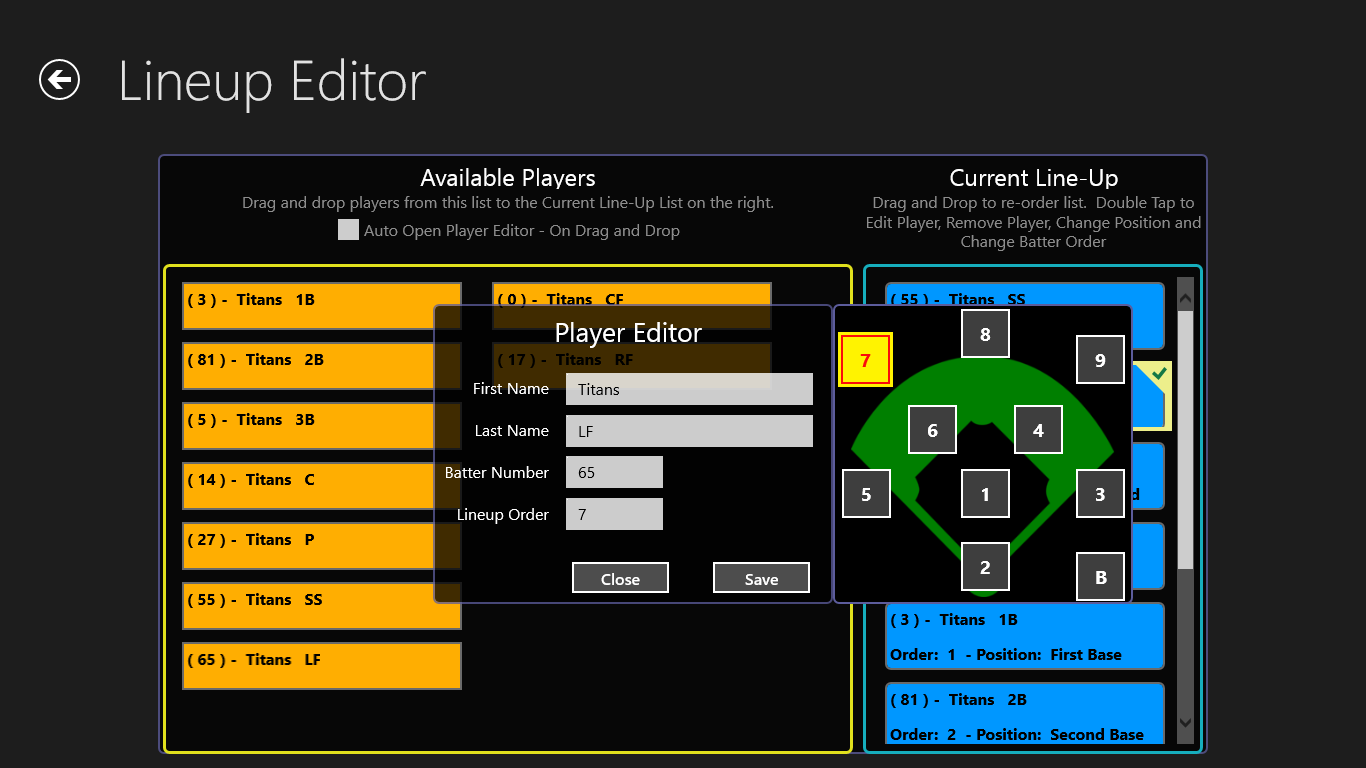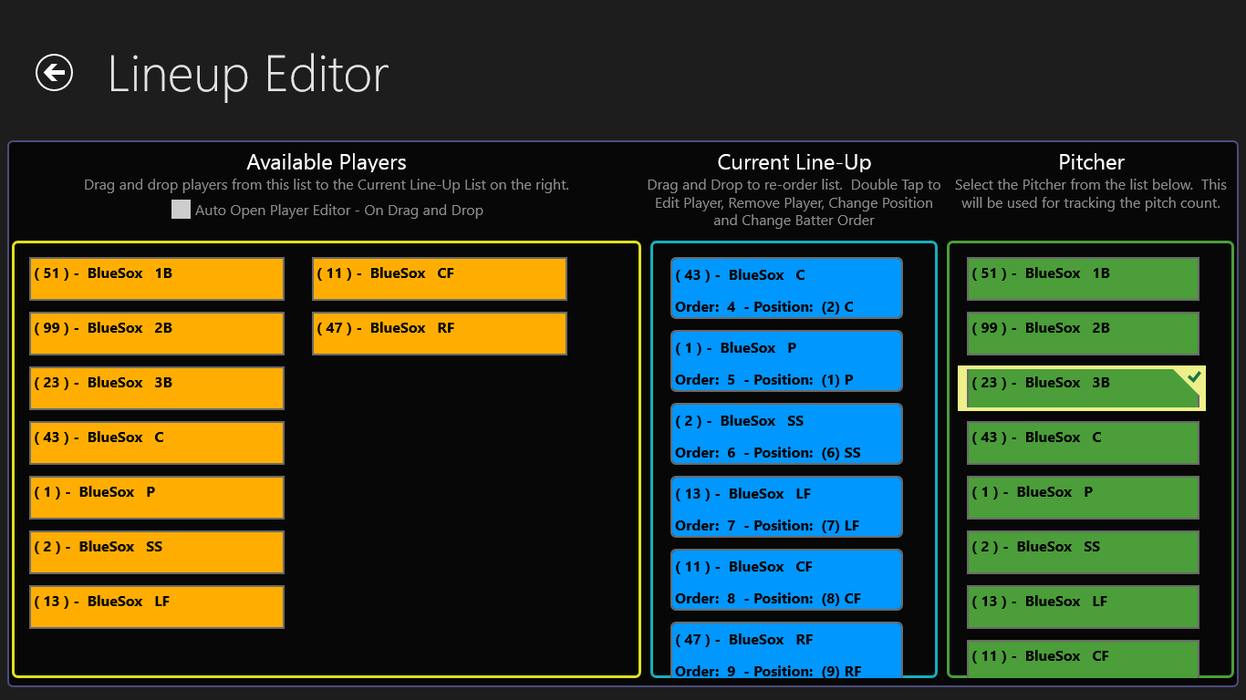 Copy Lineup – Enables a user to easily copy a lineup over again. This is used when a team bats through the lineup. In the past this was done through the Lineup Editor, but had to be added/removed one by one. Now, this is done with one click and will copy the entire lineup.