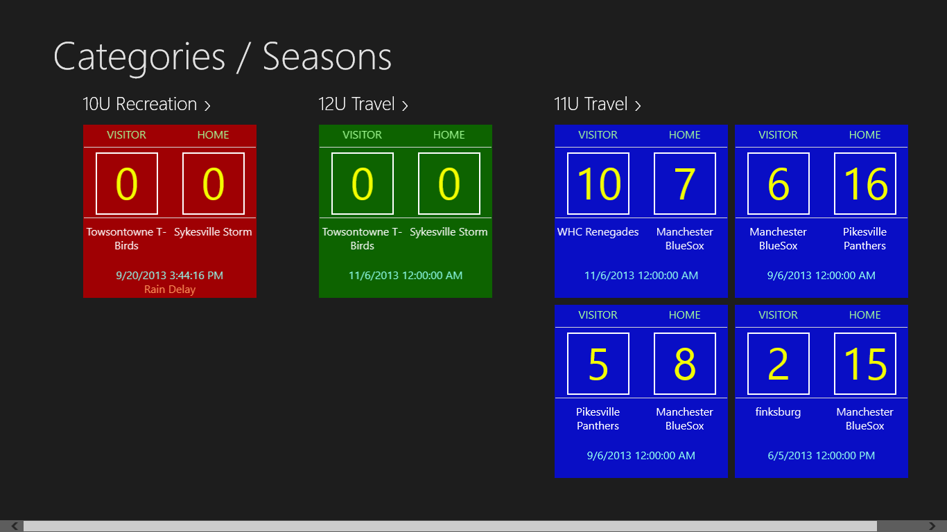 Categorize your games by teams, seasons or whatever you like. Customize the colors of the categories to your team colors for easy recognition. This enables you to easily track stats throughout a season, player or team.