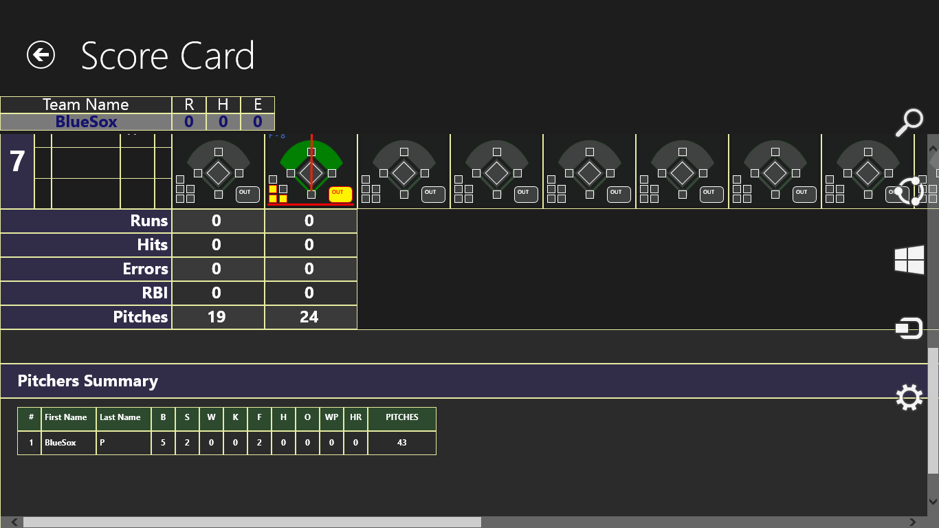 Pitch Stats - Selecting an independent pitcher and then tracking pitch stats. Also integrated into the Score Book View
