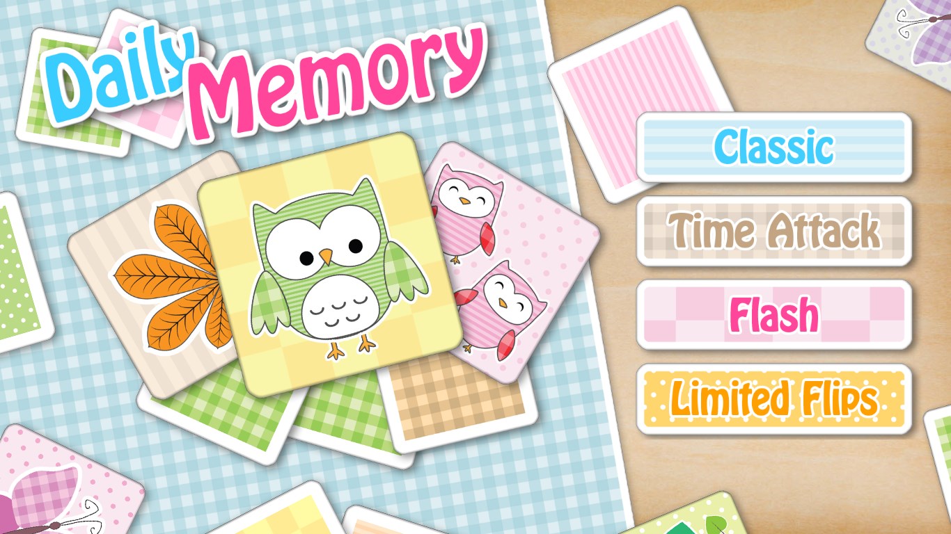 Daily Memory is a fun and exciting mind game for all ages! Choose among four different game modes and various themes to play by yourself, with your friends or family. Enjoy beautiful high quality graphics, bright background music and smooth animations.