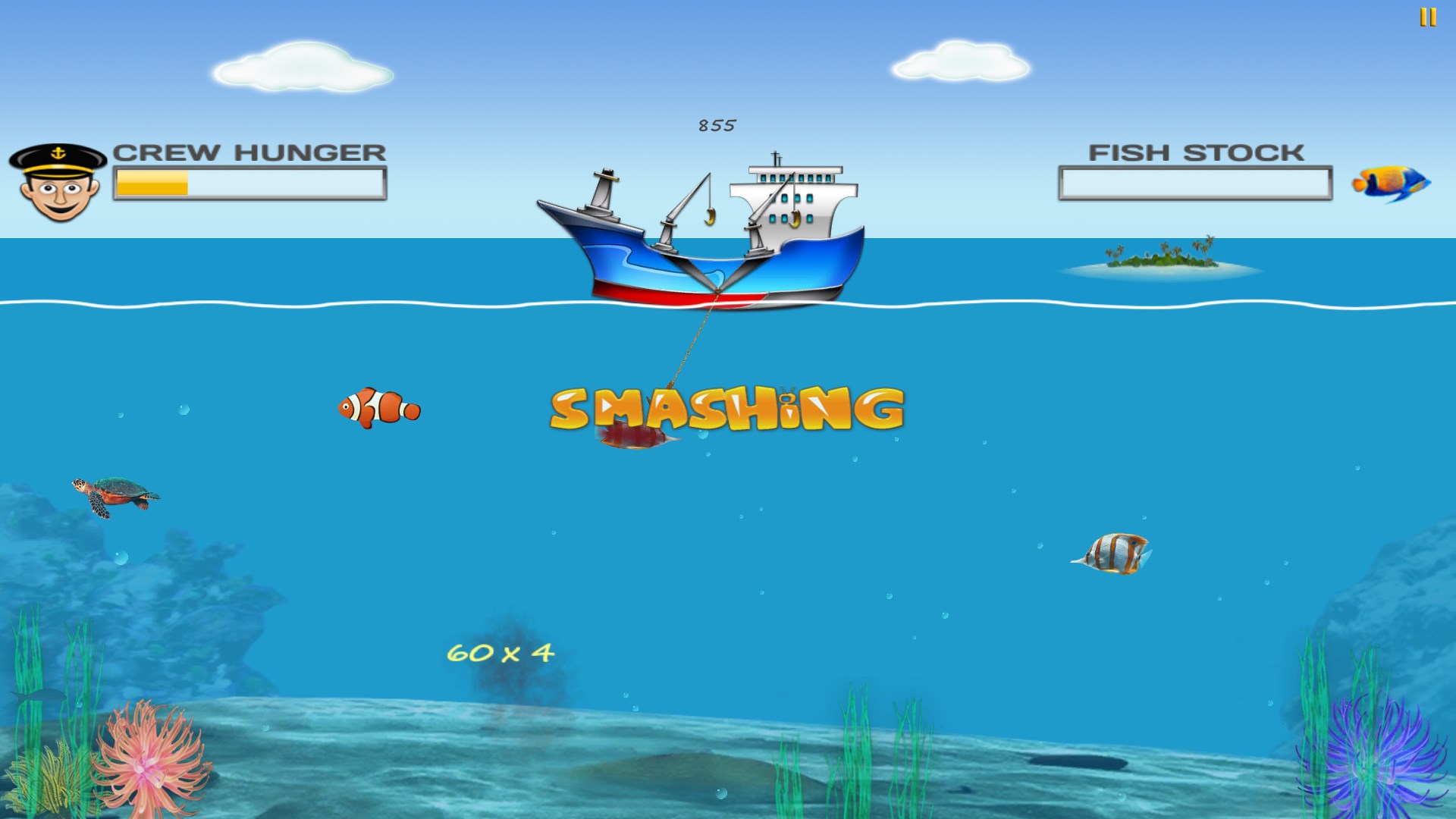 Your crew is starving for days. Save your mates by catching as many fishes as you can. You have the most powerful harpoons in store to spear your fish.
