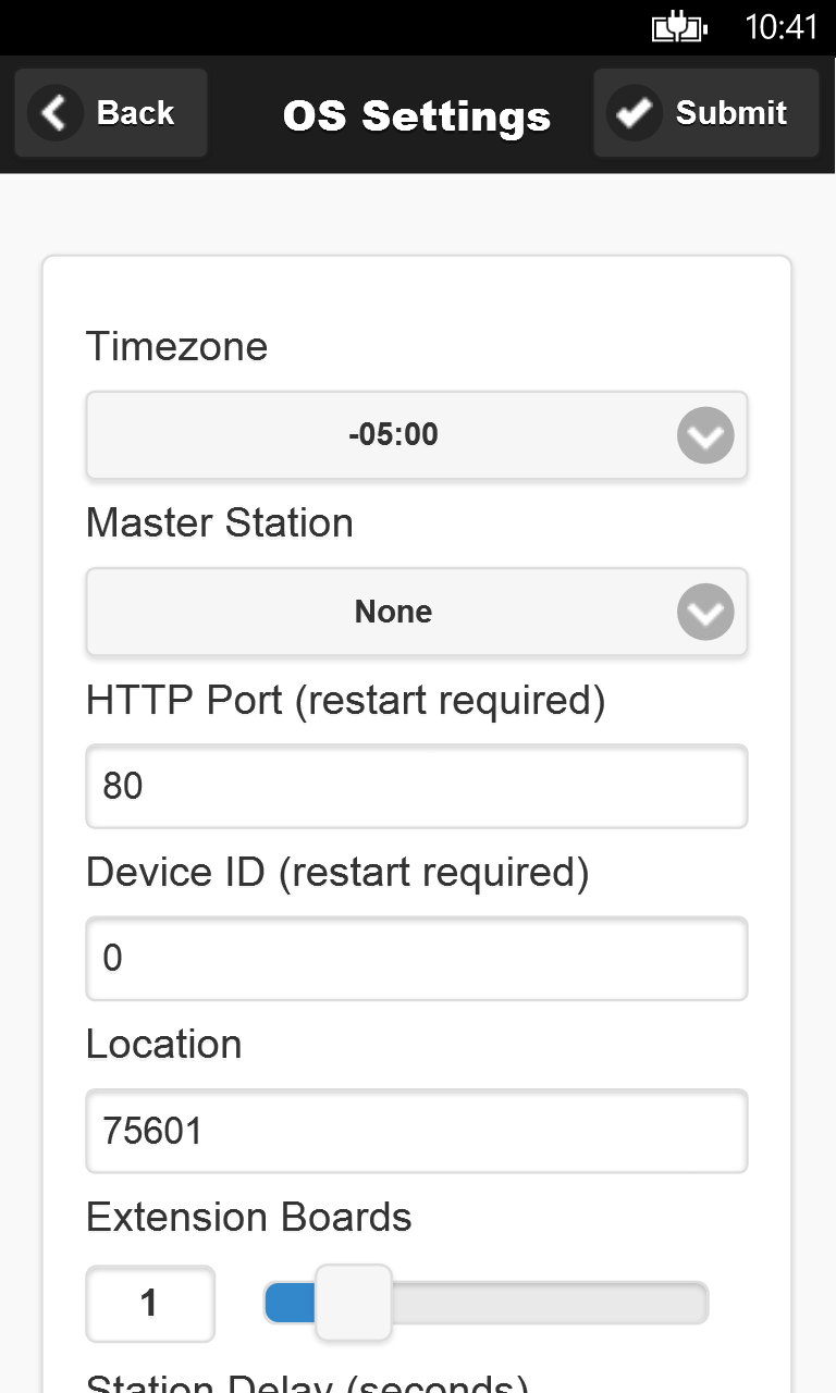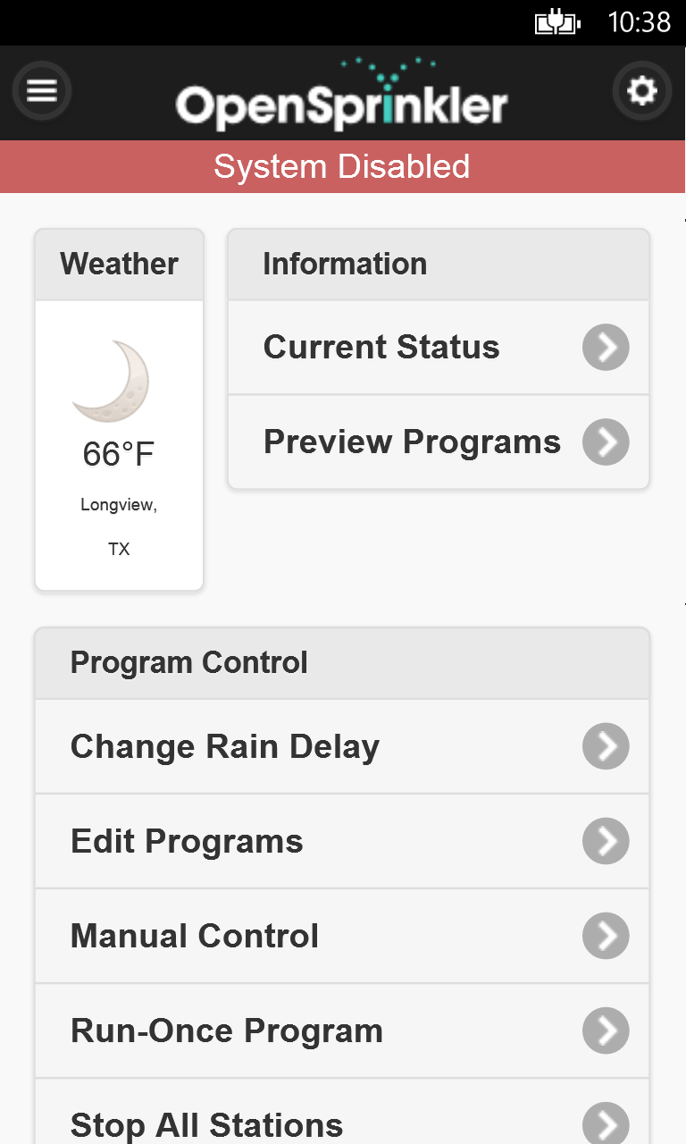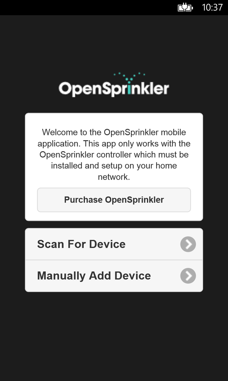 The application allows you to automatically detect and control your OpenSprinkler irrigation system(s). OpenSprinkler is an open-source Internet web-based sprinkler timer / controller built upon the Arduino platform.