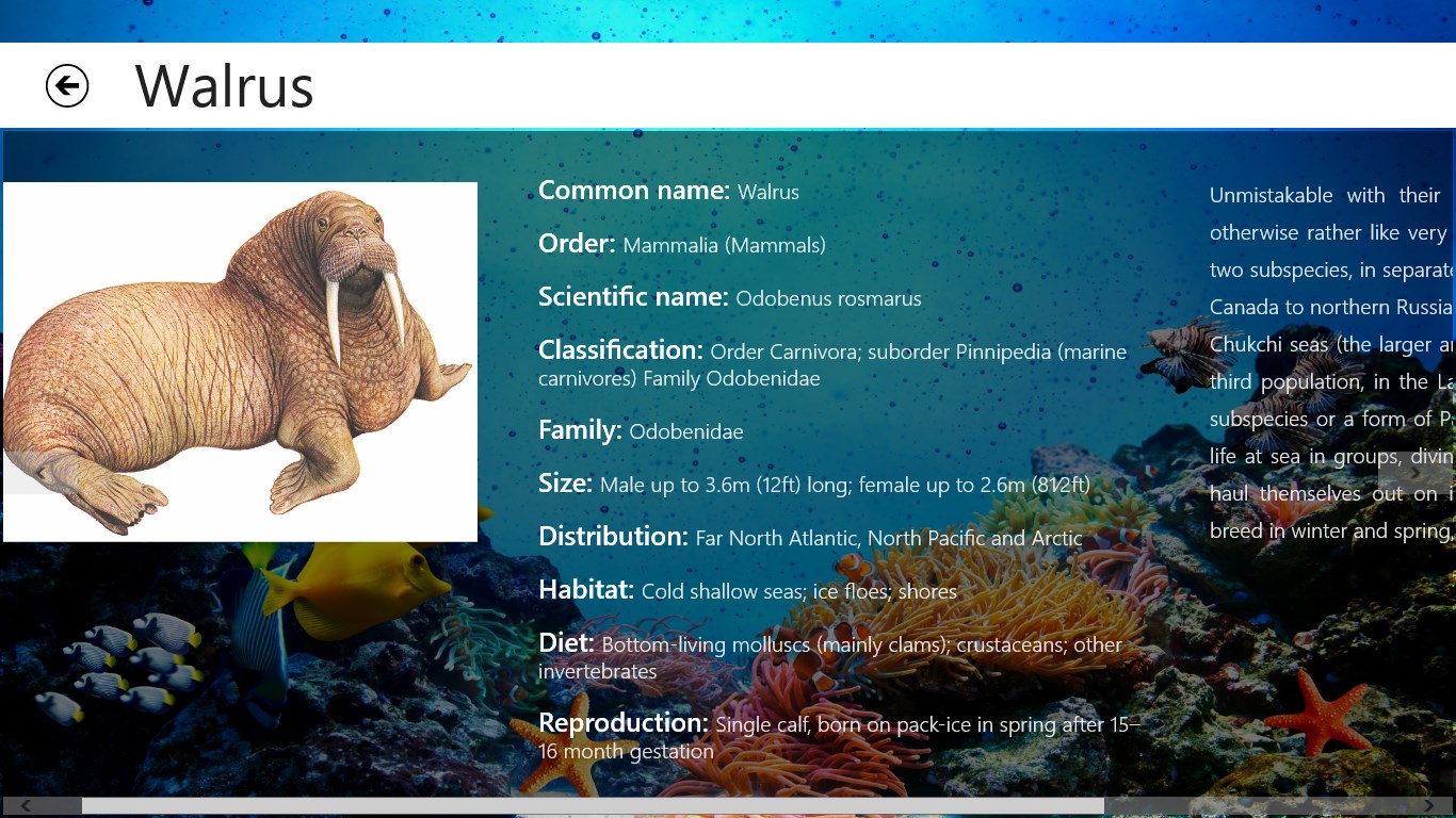 300 species featured, with examples from every major marine familySuperbly illustrated with detailed, full-colour artworksTable of information for each species includes diet, habitat, and distributionQuick search functionsGlossaryFavorites sectionAll data stored offline on your device. No Internet connection required