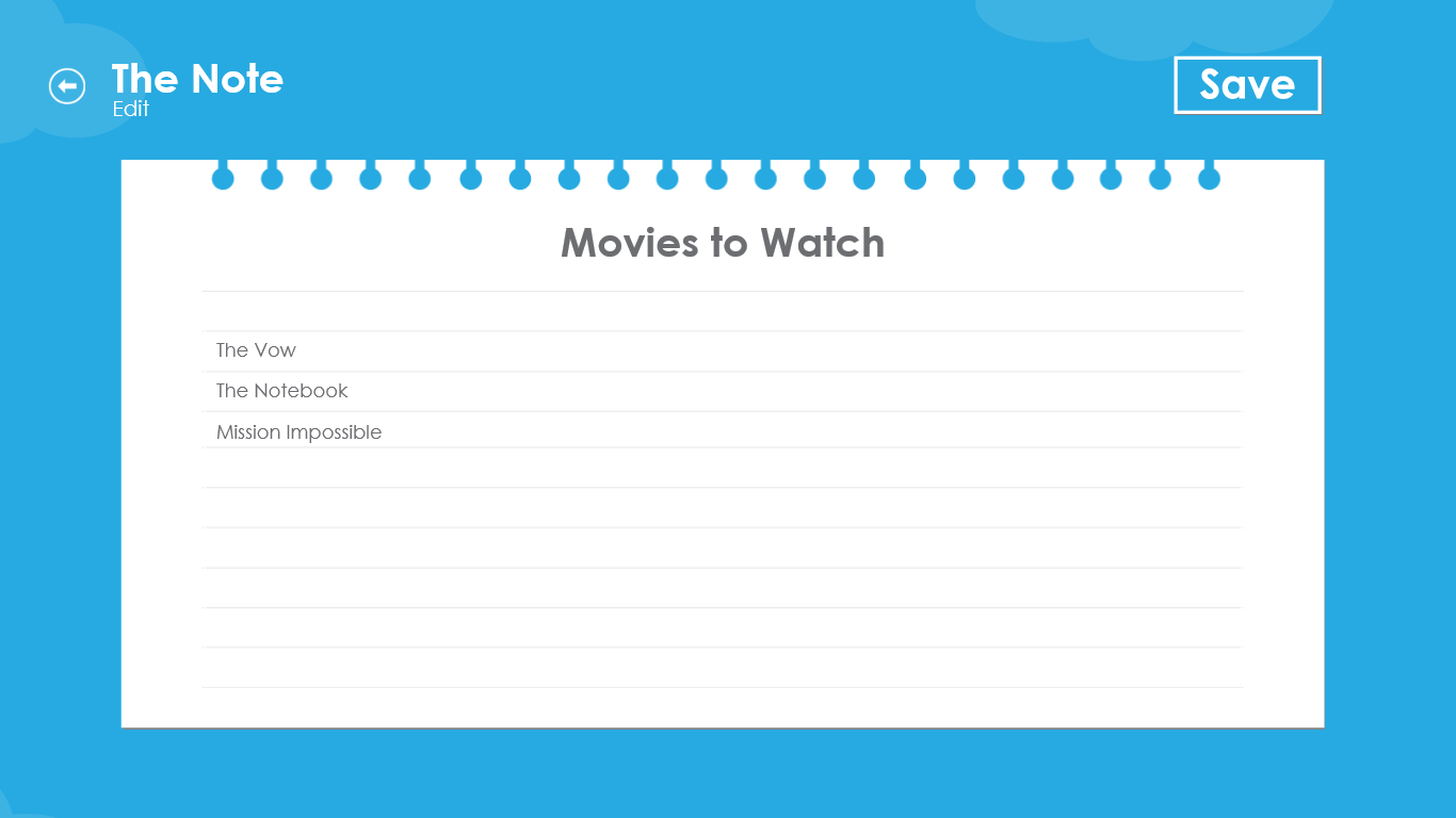 The note is a simple note taking app for people prefer large font size and simple access. Recent Notes are organized and shown in the front and all notes will be listed by its last access time. This app is perfect for people wants simplicity.