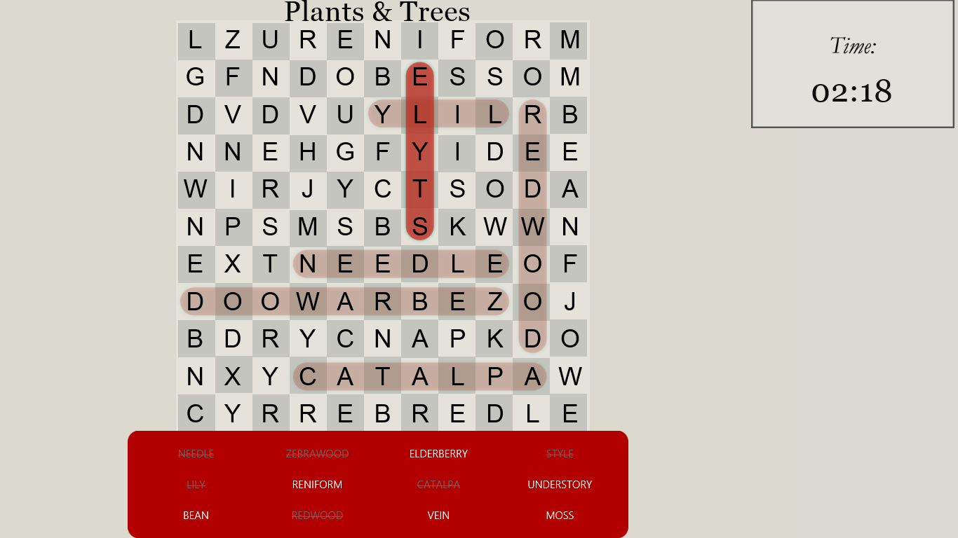 Select the words by clicking on the start and then clicking on the end of the word you have found. When the correct words are found they are automatically crossed out. Find all 12 words to get a new puzzle.
