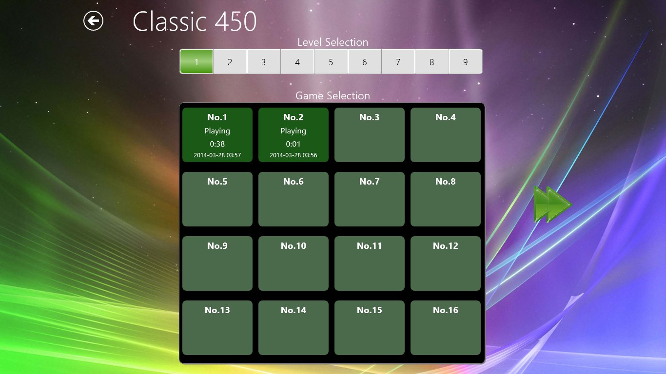 450 classic Sudoku puzzles leveled from 1 to 9, 50 puzzles per level. Custom edit and game share also provided.
