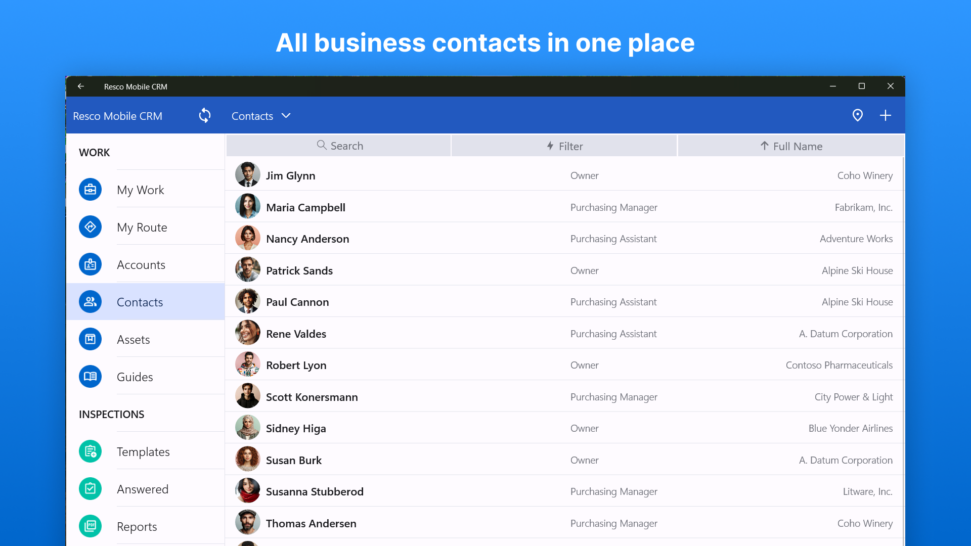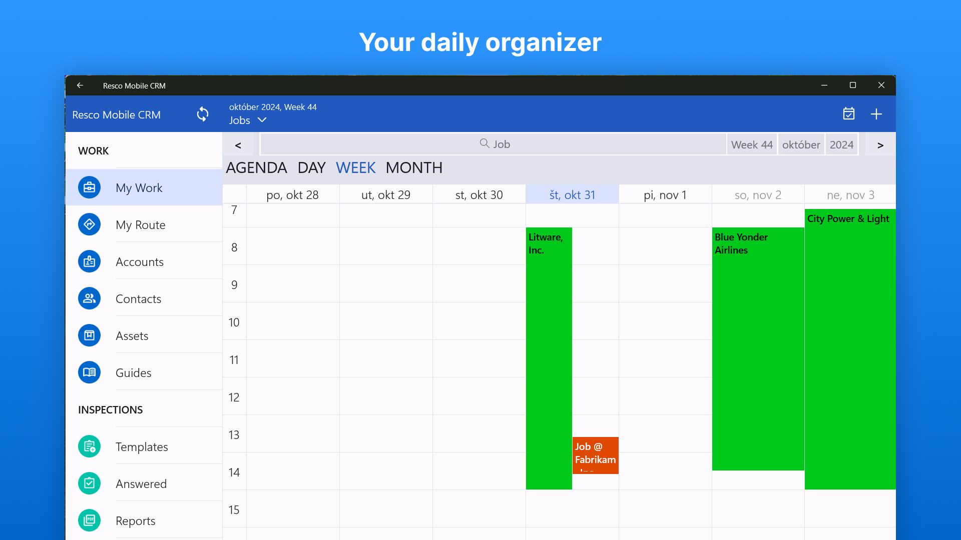 Resco Mobile CRM is an all-in-one tool for your business. Offline. Customizable. It gives you around-the-clock access to your CRM data anywhere you go, even with no Internet connection. You can connect the app directly to Microsoft Dynamics 365/CRM, Salesforce, Oracle CX, or use it to access any other CRM/ERP systems. You can utilize it with no back-end, too, as a part of Resco Cloud solution.