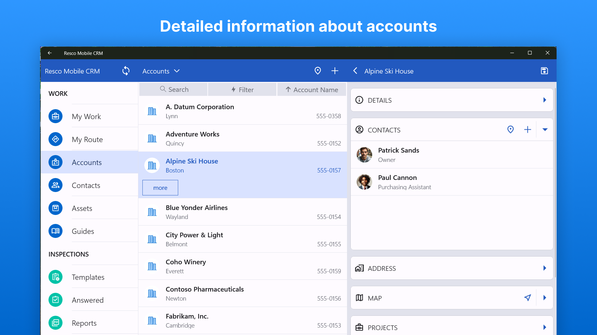 Resco Mobile CRM is fully offline and online capable, which means you will be able to view/create/delete/modify data whenever you need to, with no limits.