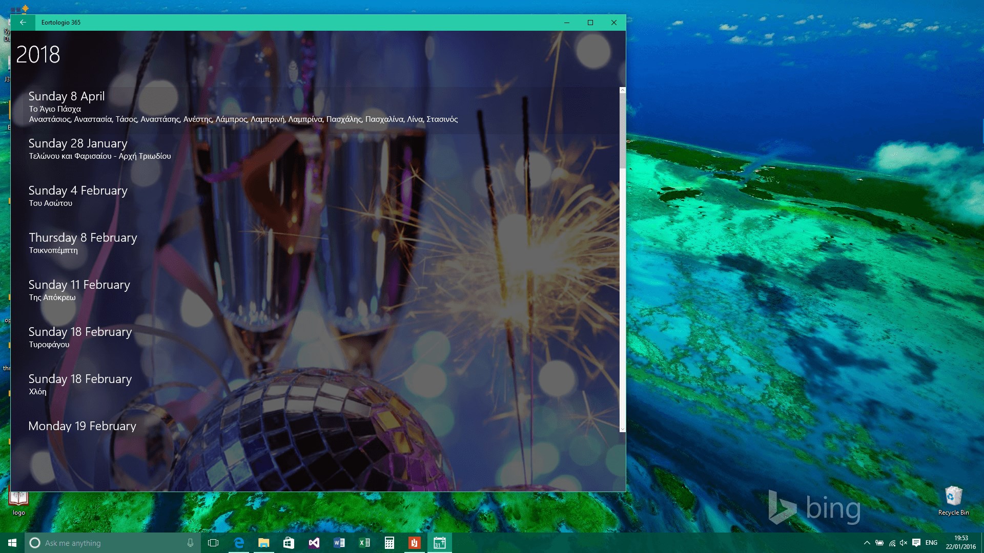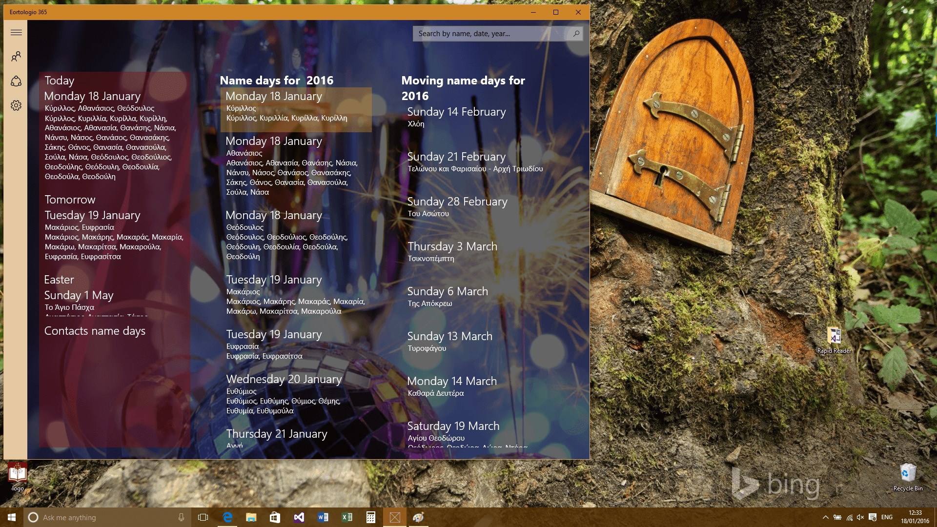 With Eortologio 365 you can stay informed of all the Greek Orthodox name days for today, tomorrow and any given date. Easily find out when Easter and all the moving name days are due. With the live tile you have on your start screen all the name days for today, tomorrow and even your contacts that celebrating.