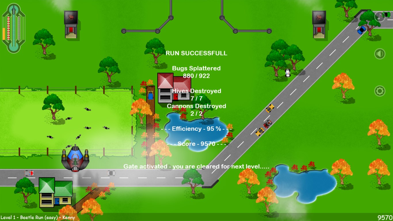 Splat-a-Bug is a top down shooter where you face an onslaught of bugs (some as big as your ship!) and your goal of course is stop them all.