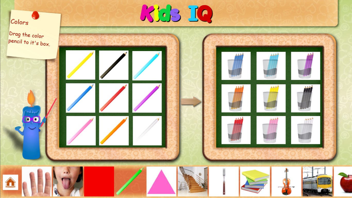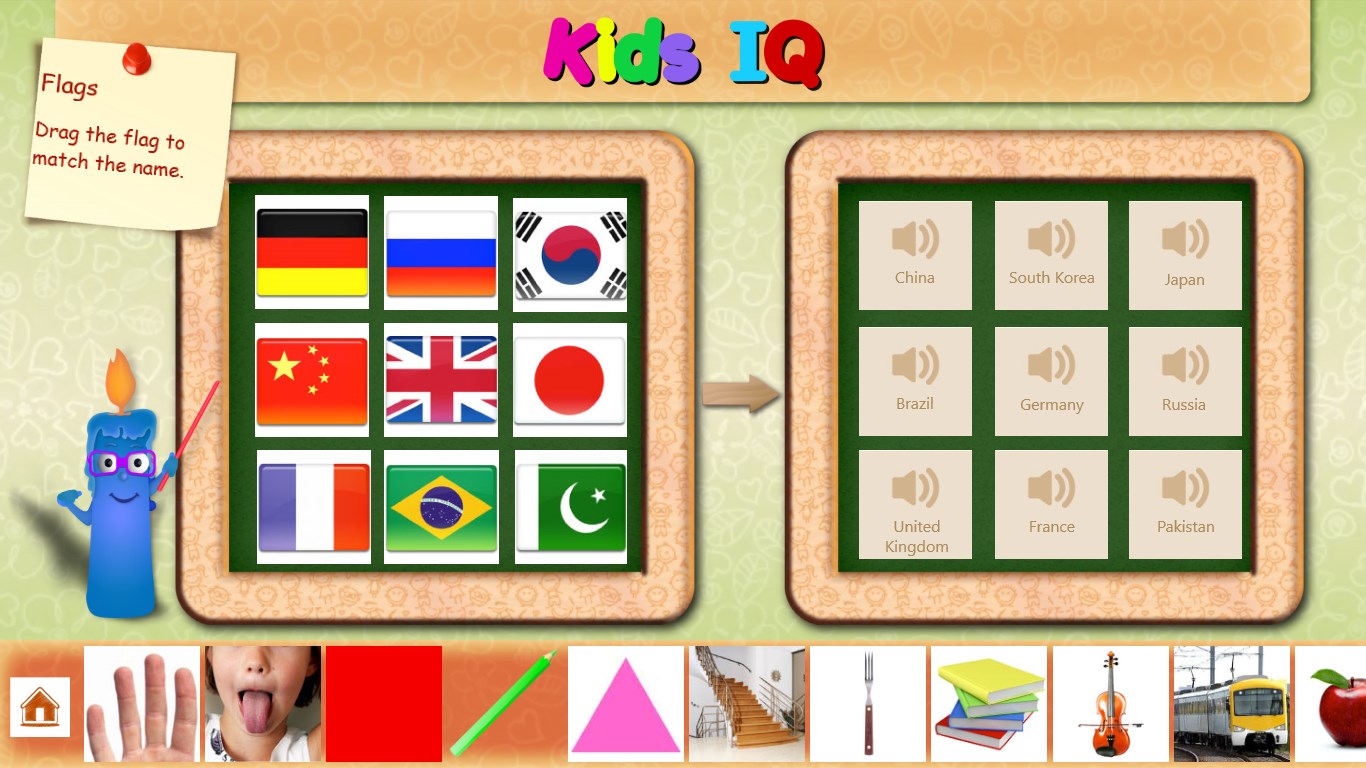 It uses innovative way to teach your child to read, listen and match words in english with pictures. A child best way to learn is by using God gifted senses. Kid's I.Q is designed to enable a child to learn and recognize the different objects, sounds,Colors, Alphabet and Numbers. The application is designed to increase the intelligence and knowledge of children in a playful fun way along with enhancing vocabulary. This app is best for pre-school and kindergarten children.