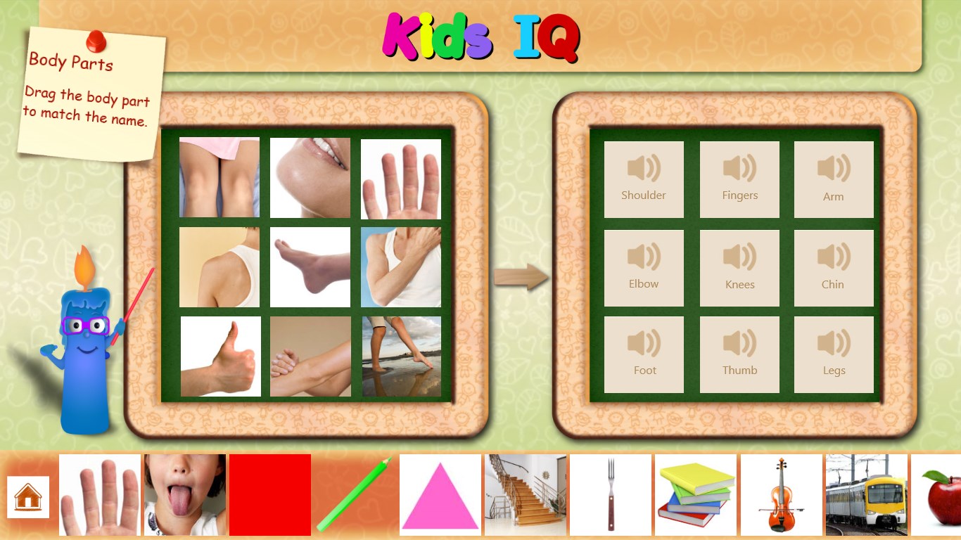 Enhancement of Kids IQLearning and recognizing images with their namesDrag images to there nameInteractive UI