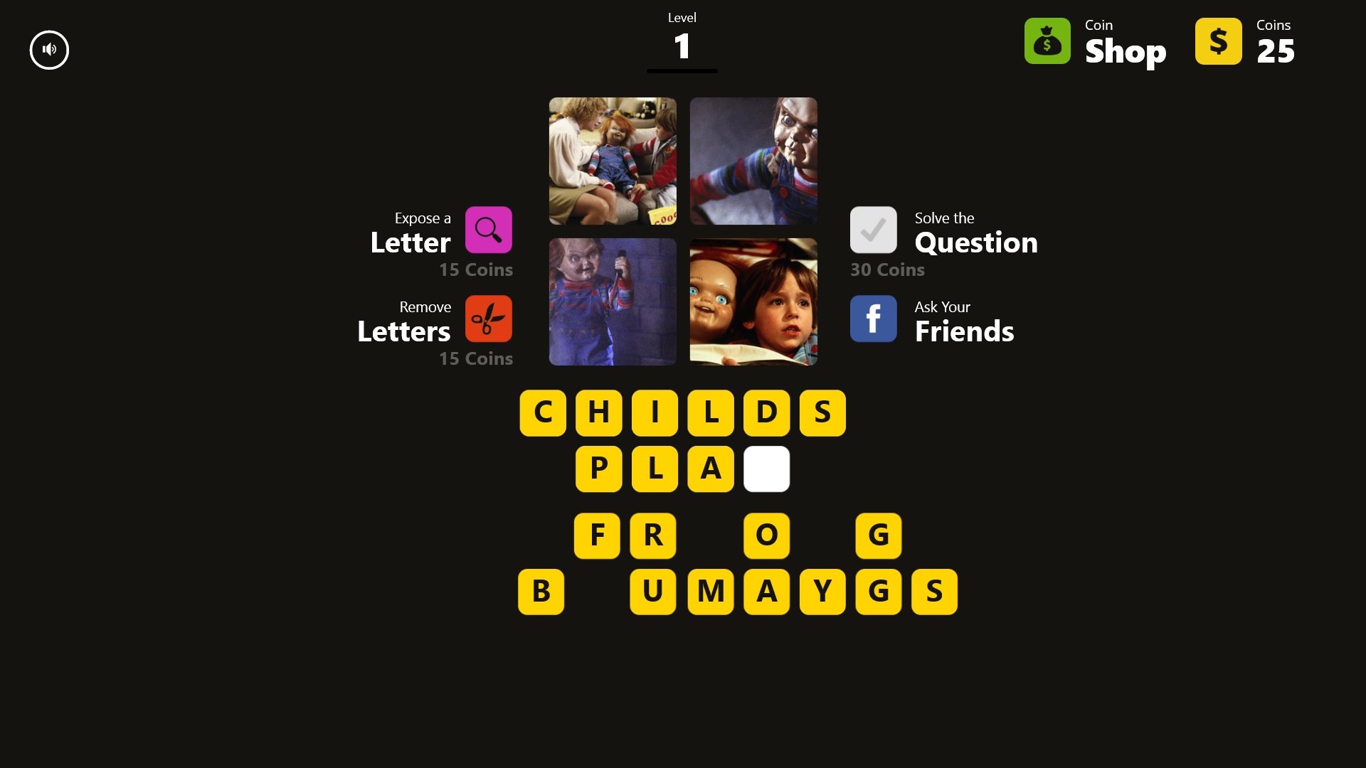 2) Remove Letters - This helpful hint will remove letters from the game that are not used in solving the puzzle. This hint is especially useful on larger puzzles.