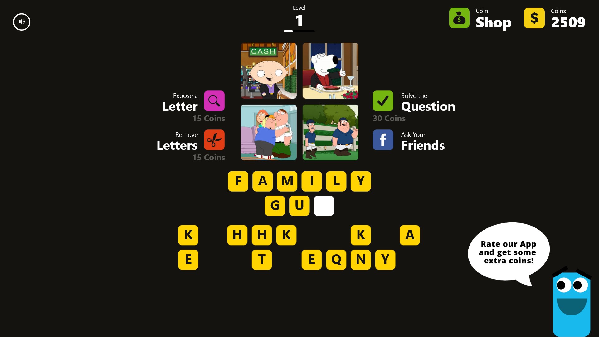 Over 400 TV Shows for you to guess!Guess from shows like - The Simpsons, Lost, Family Guy and Seinfeld.TV Fanatics & Casual Fans will love this app!