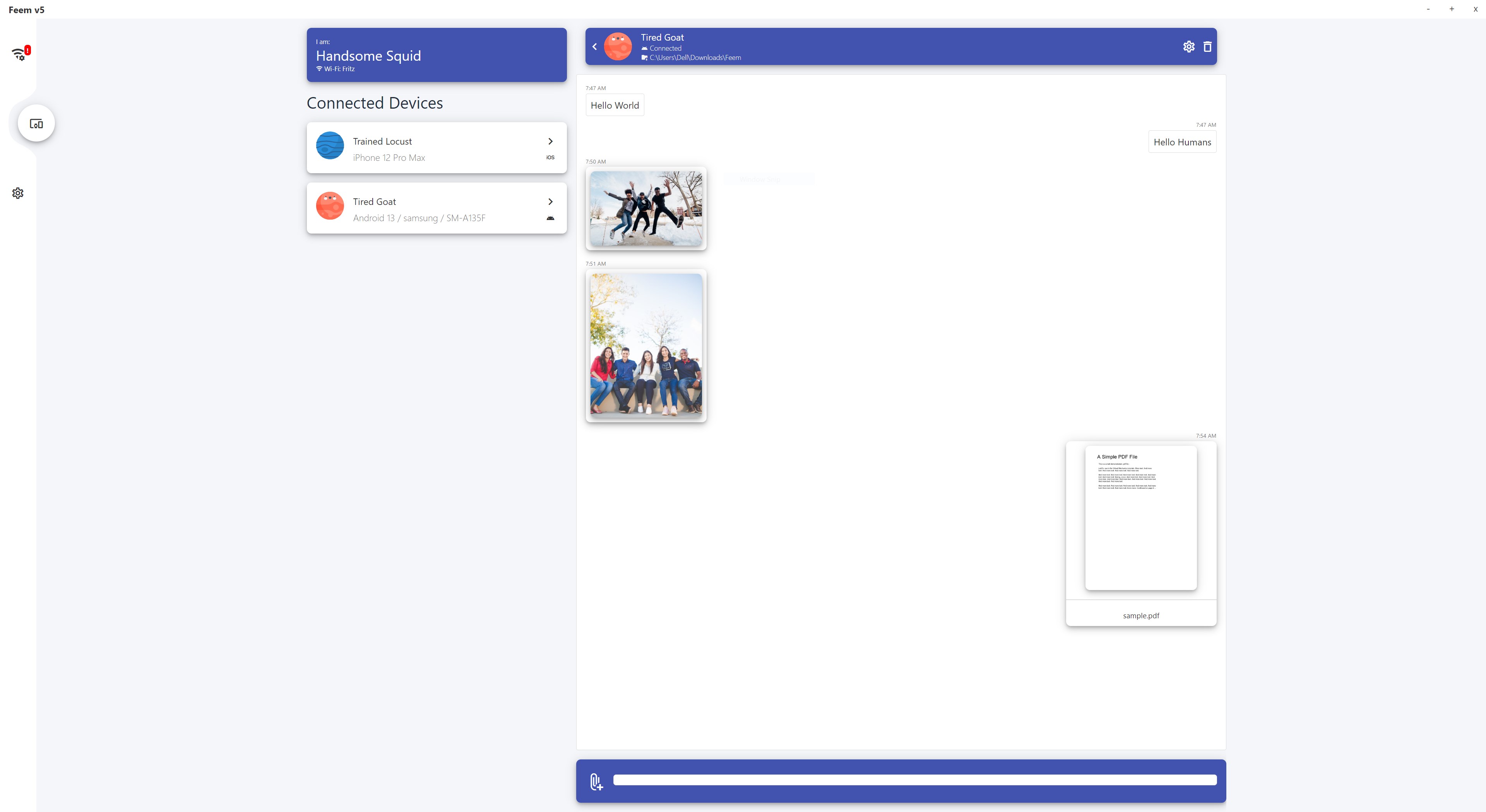 Just run Feem (on sender & receiver), choose files to share, select who gets them, click Upload. Bam!