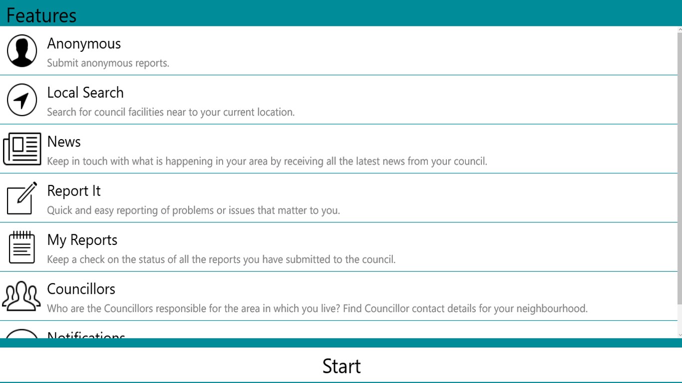 View your submitted reportsView your draft reportsReceive up-to-date progress reports, on each issue you have reported.Access your council newsView the map of your council\’s location.Search for council facilities near to your current locationAdd notes to existing reportsIntegrated help.Enhanced securityMapping editsColour co-ordination of tabsResponsive Council members tab