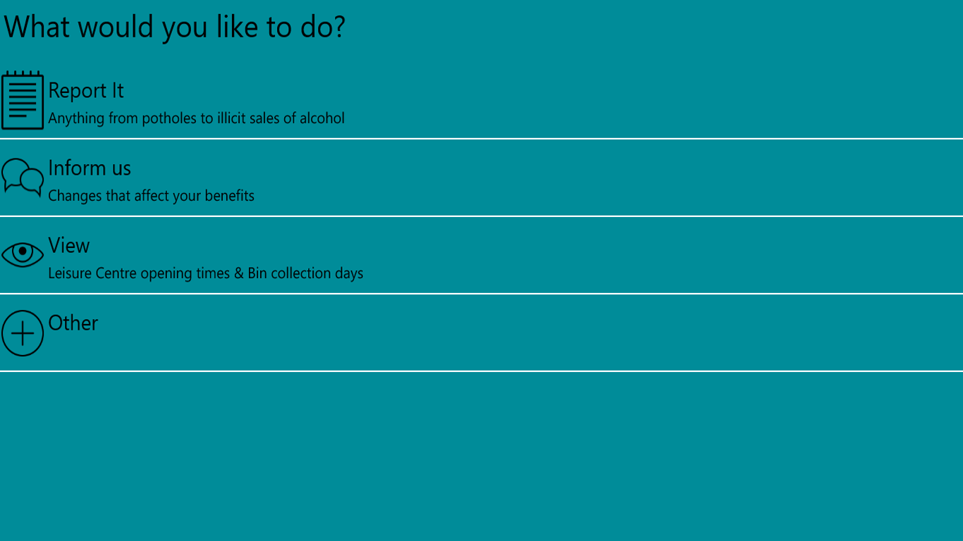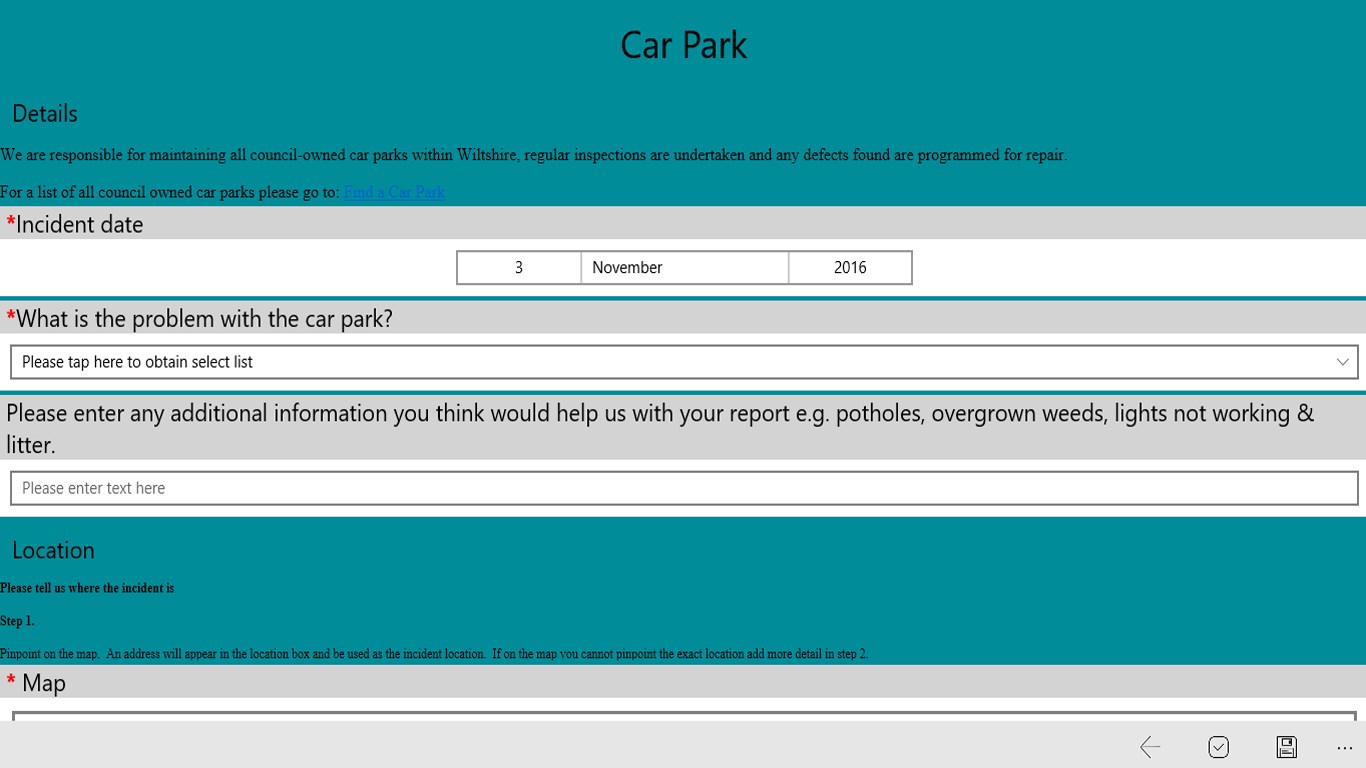 Currently the main functions are for reporting issues to Wiltshire Council such as highways, street scene, rubbish collection, fraud and trading standards. You can attach documents, photos or videos to provide additional information and pinpoint exact locations using the mapping software on your device.